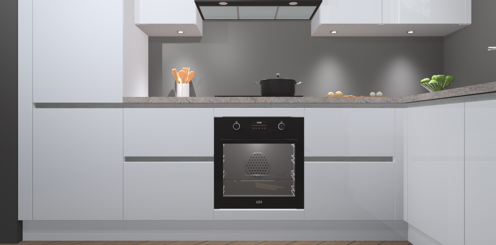 De Sneeuwwitte hoogglans greeploze keuken Geneve is uitgerust met 5 inbouwapparaten - een oven, inductiekookplaat, afzuigkap, vaatwasser en koelkast - voor al uw kook- en bewaarbehoeftes. U kunt deze apparaten desgewenst eenvoudig upgraden naar AEG of de oven omruilen voor een combimagnetron na het plaatsen van uw bestelling. En met de soft close deuren, voldoende opbergruimte en kasten die voorgemonteerd worden geleverd, bent u in een mum van tijd klaar om heerlijke maaltijden te bereiden!