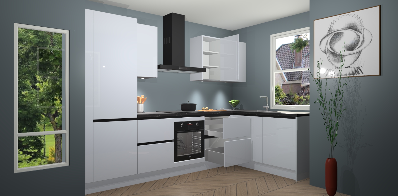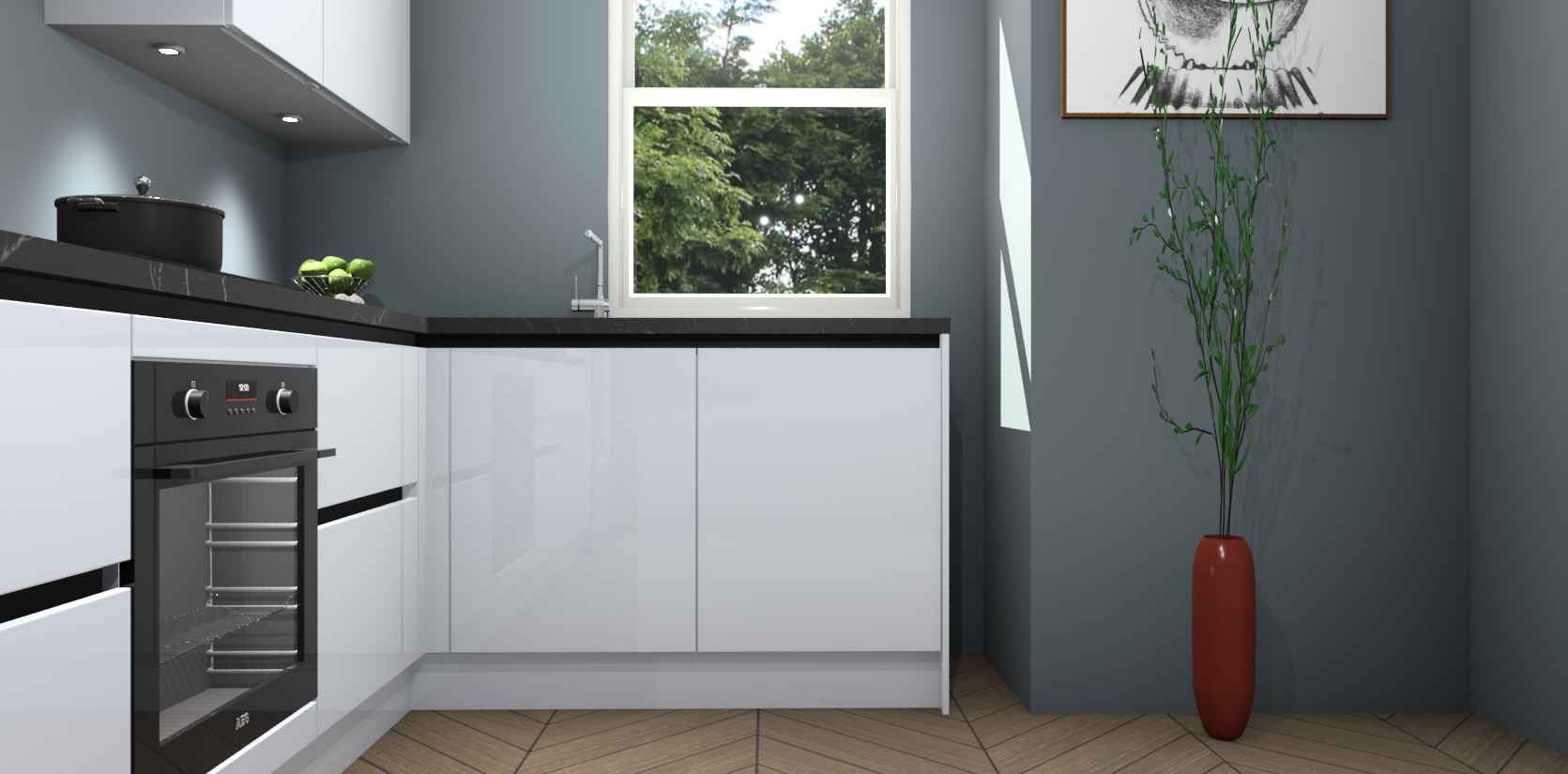 De Sneeuwwitte hoogglans greeploze keuken Geneve is uitgerust met 5 inbouwapparaten - een oven, inductiekookplaat, afzuigkap, vaatwasser en koelkast - voor al uw kook- en bewaarbehoeftes. U kunt deze apparaten desgewenst eenvoudig upgraden naar AEG of de oven omruilen voor een combimagnetron na het plaatsen van uw bestelling. En met de soft close deuren, voldoende opbergruimte en kasten die voorgemonteerd worden geleverd, bent u in een mum van tijd klaar om heerlijke maaltijden te bereiden!