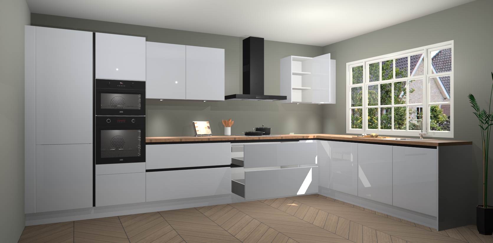 Kom dichtbij de perfecte keuken van uw dromen met de sneeuwwitte hoogglans greeploze keuken Graz. Met een prachtige houtlook en eigentijds ontwerp, straalt deze keuken warmte en sfeer uit. Of u nu liefhebber bent van traditionele of moderne stijlen, er is genoeg ruimte om aan al uw behoeften te voldoen.