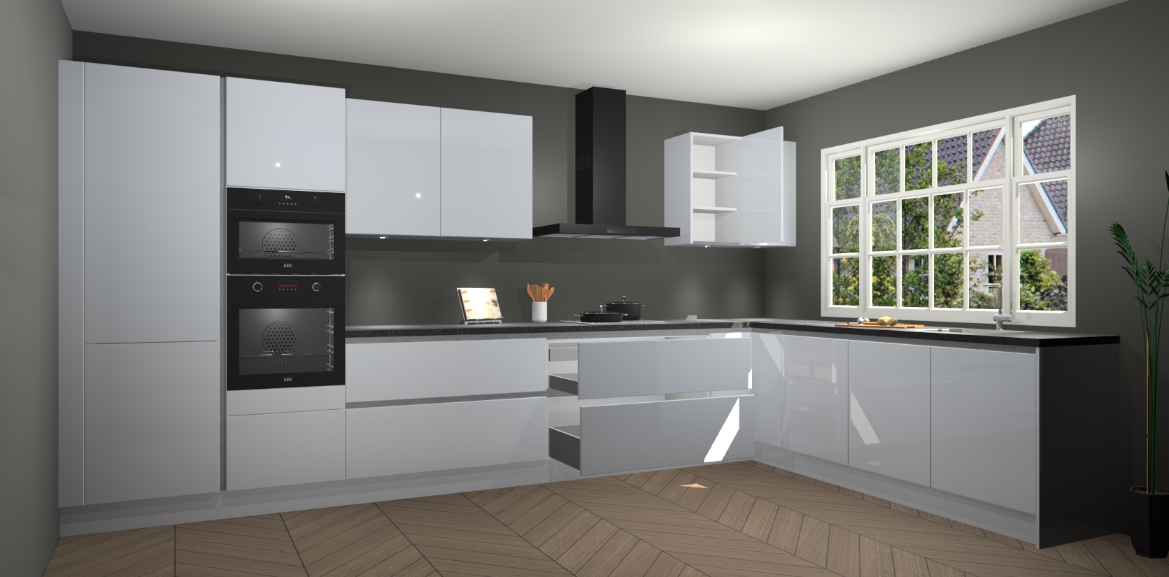 Heeft u nog apparatuur nodig? Geen probleem: de sneeuwwitte hoogglans greeploze keuken Graz bevat vijf ingebouwde apparaten - een oven, inductiekookplaat, afzuigkap, vaatwasser en koelkast - die gemakkelijk kunnen worden bijgewerkt naar AEG na bestelling. En als dat nog niet genoeg is; onze kasten worden pre-geassembleerd geleverd en zijn verkrijgbaar tegen een vastgeroeste lage prijs! U hoeft nooit meer te zoeken naar goede kwaliteit en service want onze producten hebben echt Duitse kwaliteit.