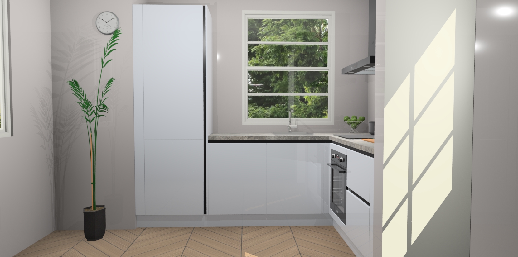 Onze Sneeuwwitte hoogglans greeploze keuken Harbin is uitgerust met vijf inbouwapparaten - een oven, inductiekookplaat, afzuigkap, vaatwasser en koelkast - waardoor u in een handomdraai heerlijke maaltijden voor familie en vrienden bereidt. Geen detail is gespaard bij het maken van dit moderne keukenmeesterwerk: softclose deuren zijn standaard zodat u nooit meer hoeft te vechten met trage kasten.
