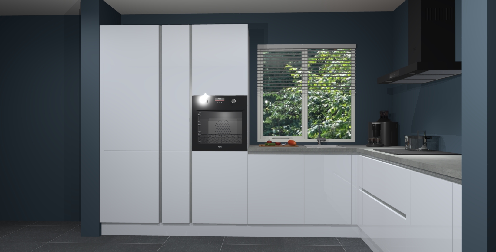 Met een modern, tijdloos design en ruime opslagruimte, zult u zich in no-time thuis voelen in uw nieuwe keuken. Uw leven wordt eenvoudiger met de soft-close deuren die voor het ultieme stille comfort zorgen - geen geluid dat u stoort terwijl u kookt. Ook is de keuken voorzien van 5 ingebouwde apparaten: een oven, inductie kookplaat, afzuigkap, vaatwasser en koelkast. Deze kunnen gemakkelijk na bestelling worden bijgewerkt naar AEG - waardoor uw luxe ervaring compleet is.