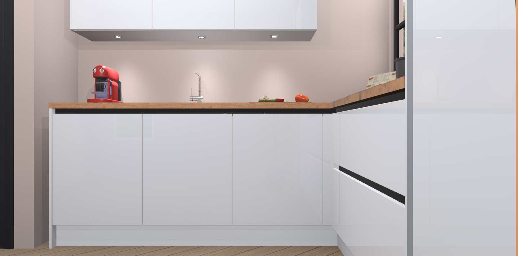 Inclusief plinten, stelpoten en werkblad