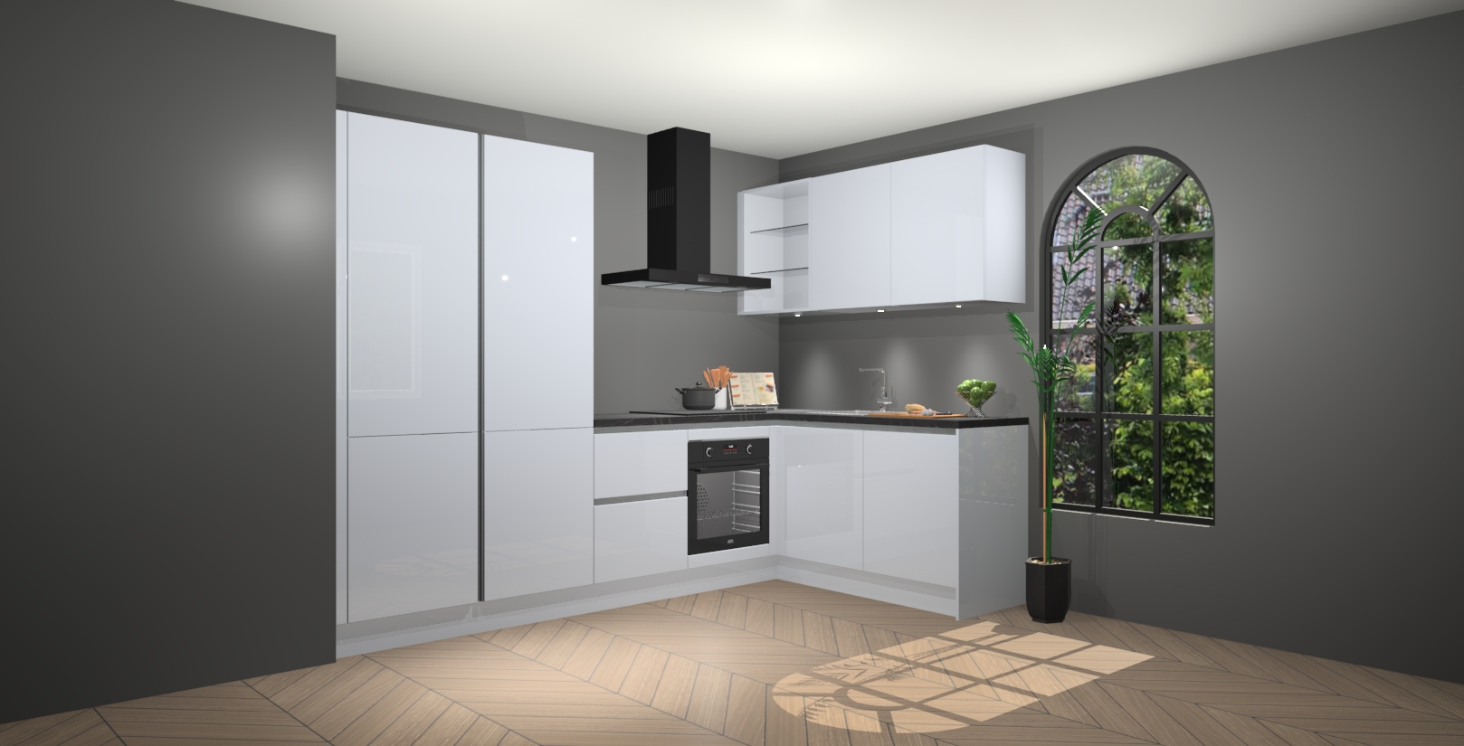 Wordt wakker met de prachtige Sneeuwwitte Hoogglans greeploze keuken Kannur. Onze keuken straalt warmte en sfeer uit en is de perfecte aanvulling voor elk huis. Ontdek hoe de moderne ontwerpstijl uw keuken een sprankelend jasje geeft. De keuken is uitgerust met softclose deuren, en het greeploze ontwerp maakt het een elegante keuze voor elke keuken.