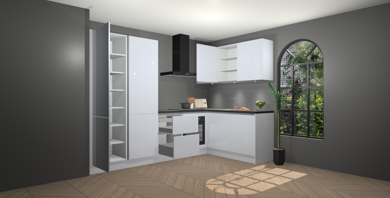 Onze keuken wordt voor geassembleerd geleverd in slechts 7 weken, waardoor u snel en eenvoudig met het installeren kan beginnen. Onze keuken omvat 5 inbouwapparaten: een oven, inductieplaat, afzuigkap, vaatwasser en koelkast. Deze zijn gemakkelijk na bestelling te upgraden. Onze keukens worden gemaakt in overeenstemming met de Duitse kwaliteitseisen, waardoor u verzekerd bent van een hoog kwaliteit product.