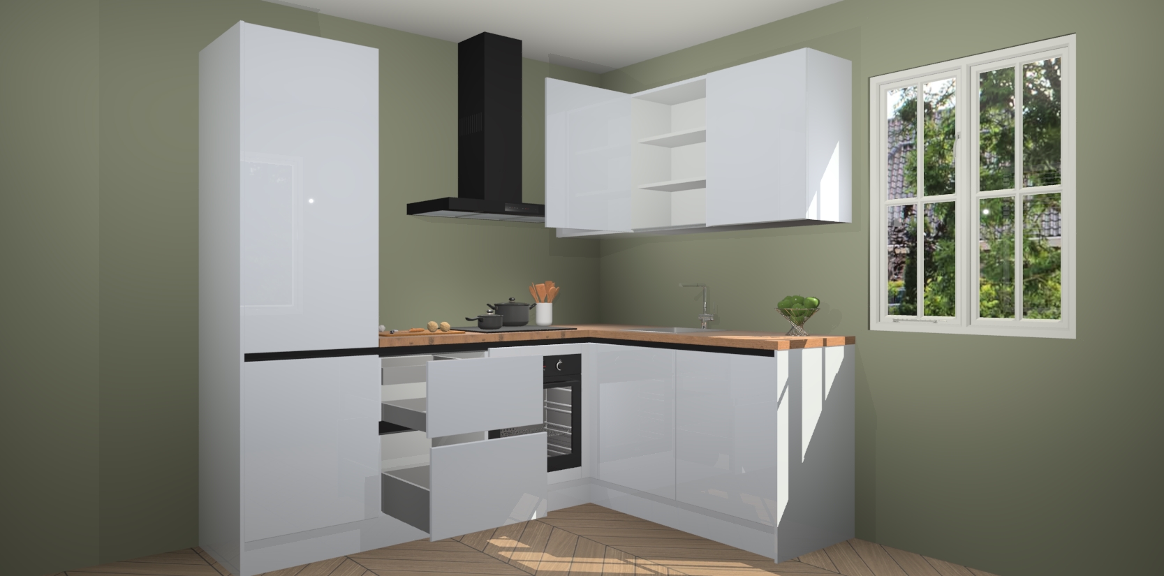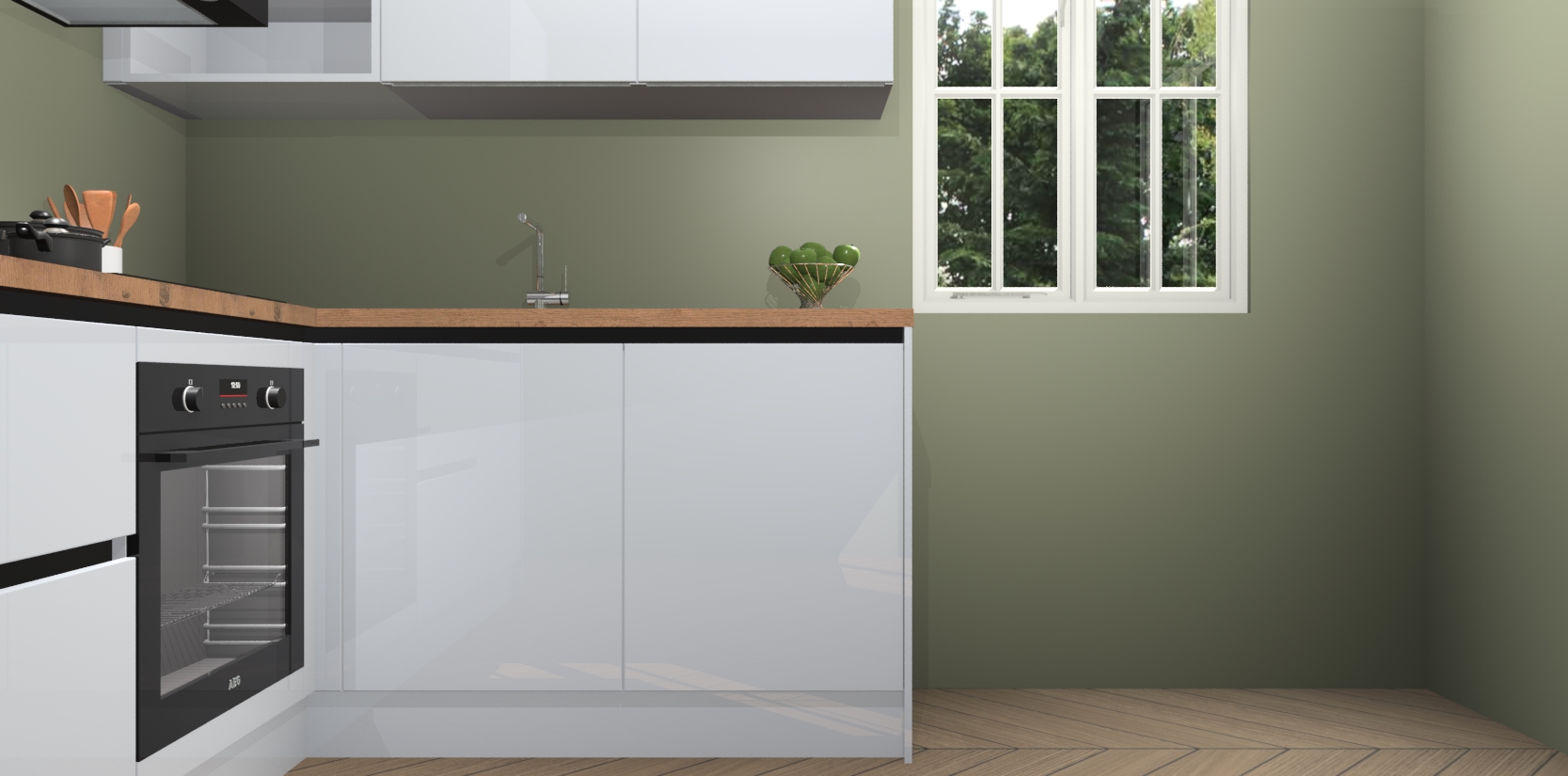 Dit model biedt u voldoende opbergruimte en vijf ingebouwde apparaten: een oven, inductiekookplaat, afzuigkap, vaatwasser en koelkast. Deze apparaten kunnen gemakkelijk worden geüpgrade naar AEG nadat u besteld heeft. De verschillende laden en kastjes bevatten softclose-deuren waardoor ze gezellig dichtvallen met een geruststellend helemaal geruisloos geluid. En dat is nog niet alles! We garanderen ook dat de prijs altijd laag blijft - dus haal nu uw Sneeuwwitte hoogglans greeploze keuken Krakau terwijl het kan.