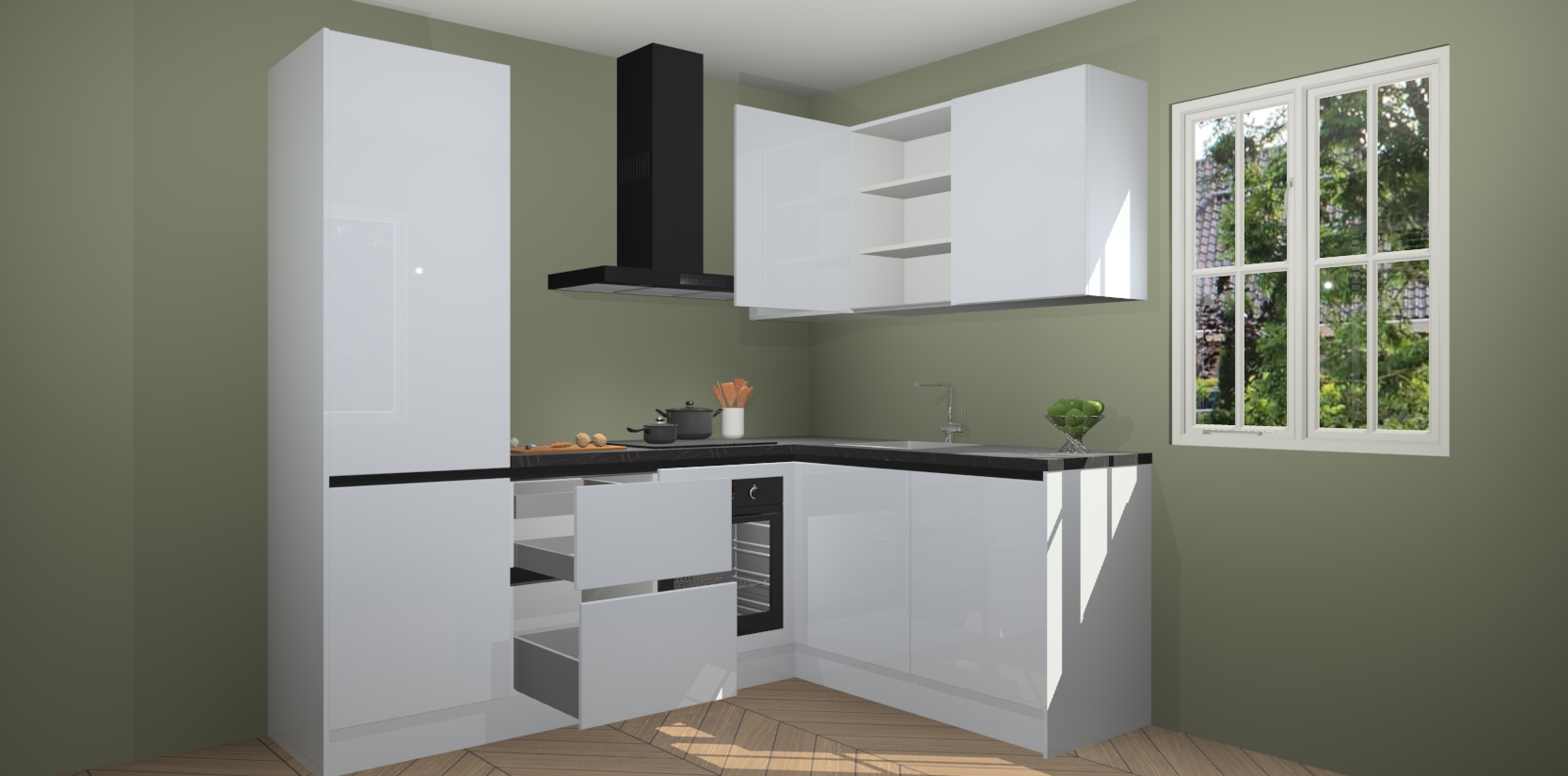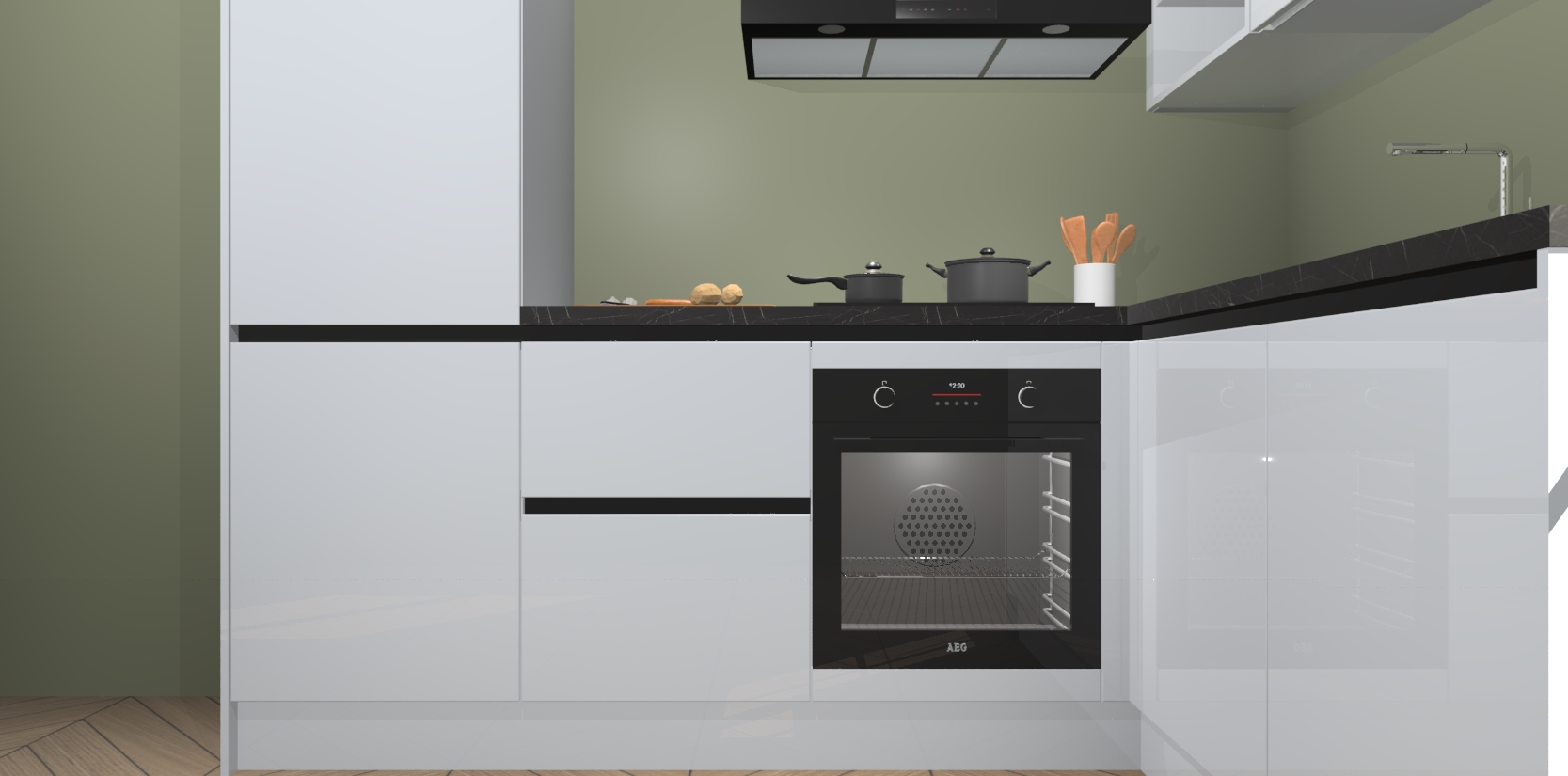 Dit model biedt u voldoende opbergruimte en vijf ingebouwde apparaten: een oven, inductiekookplaat, afzuigkap, vaatwasser en koelkast. Deze apparaten kunnen gemakkelijk worden geüpgrade naar AEG nadat u besteld heeft. De verschillende laden en kastjes bevatten softclose-deuren waardoor ze gezellig dichtvallen met een geruststellend helemaal geruisloos geluid. En dat is nog niet alles! We garanderen ook dat de prijs altijd laag blijft - dus haal nu uw Sneeuwwitte hoogglans greeploze keuken Krakau terwijl het kan.