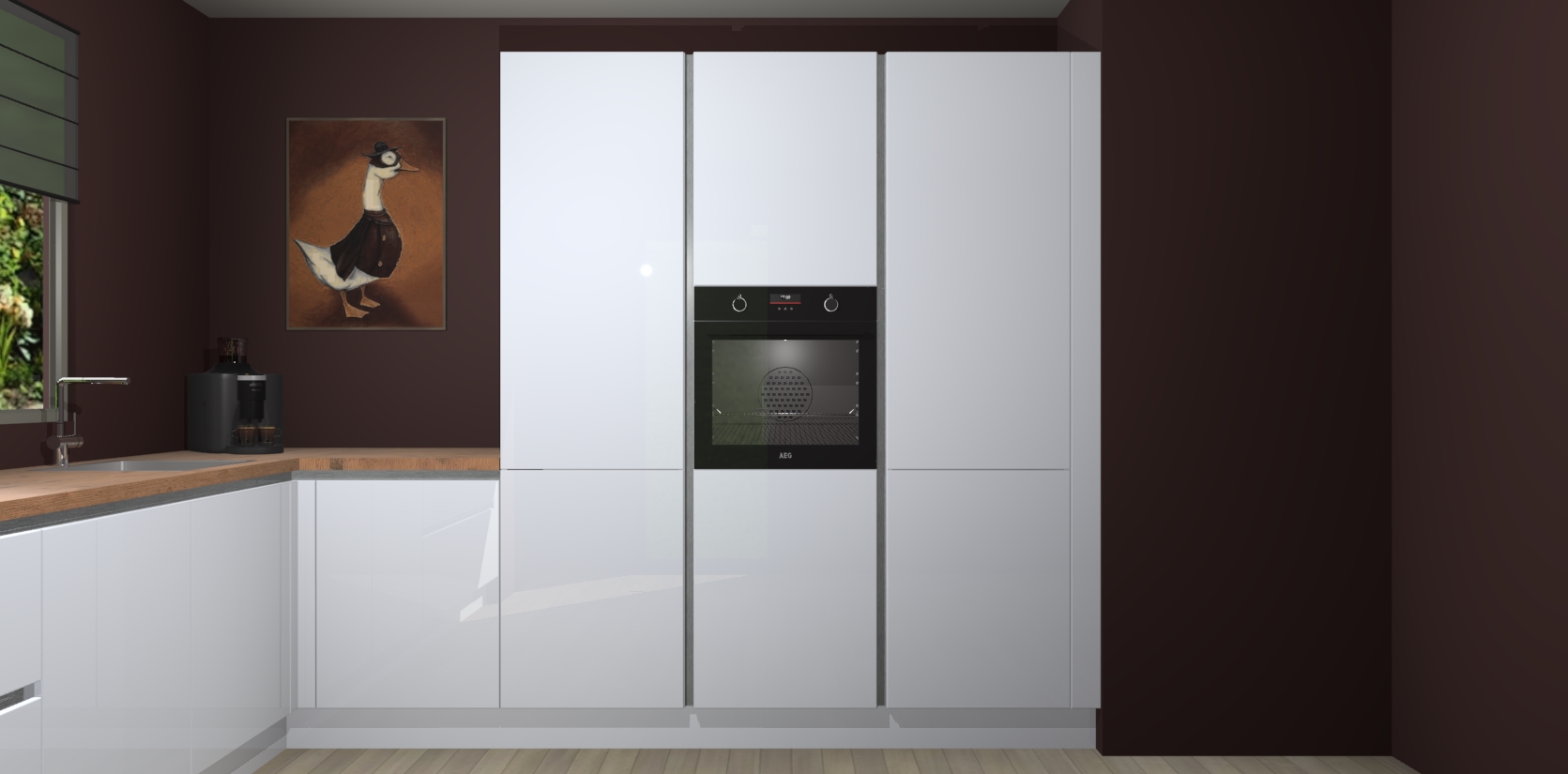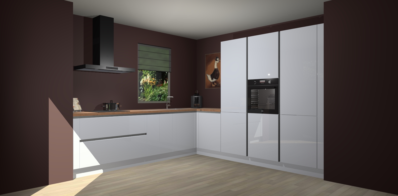 Welkom bij de Sneeuwwitte hoogglans greeploze keuken Laos. Deze prachtige keuken zal de komende jaren het middelpunt van de belangstelling in uw huis zijn. Uitgerust met vijf inbouwapparaten komt u nooit kookgereedschap tekort. Bovendien geeft de warme houtlook elke ruimte een uitnodigende en tijdloze uitstraling.