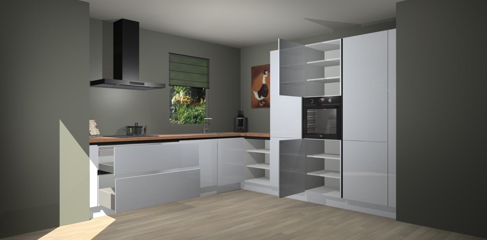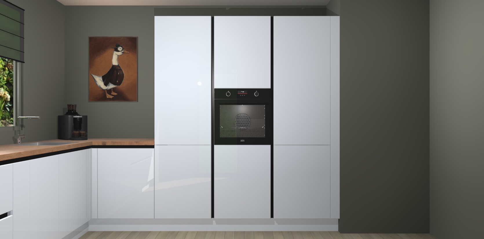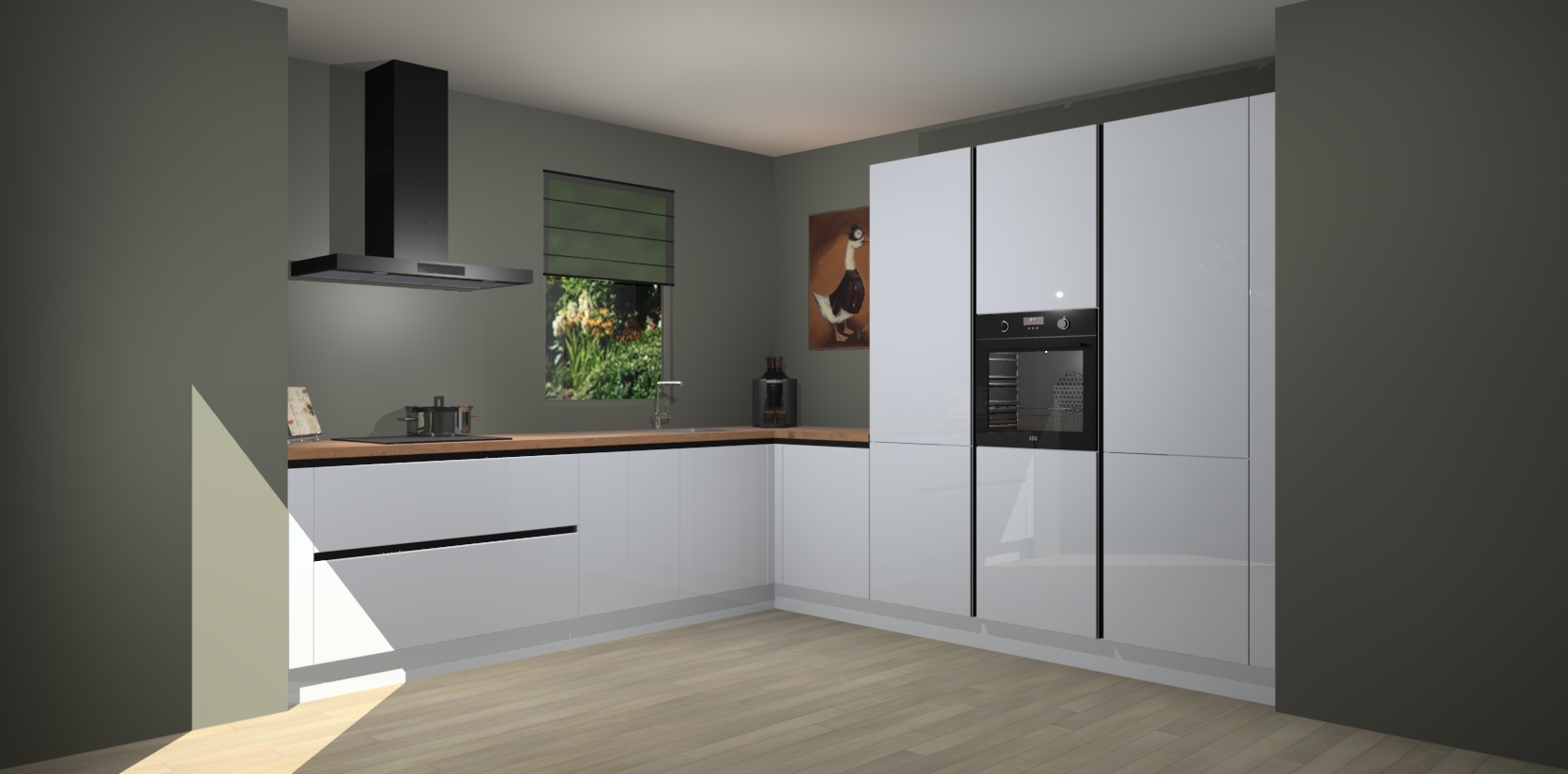 Welkom bij de Sneeuwwitte hoogglans greeploze keuken Laos. Deze prachtige keuken zal de komende jaren het middelpunt van de belangstelling in uw huis zijn. Uitgerust met vijf inbouwapparaten komt u nooit kookgereedschap tekort. Bovendien geeft de warme houtlook elke ruimte een uitnodigende en tijdloze uitstraling.