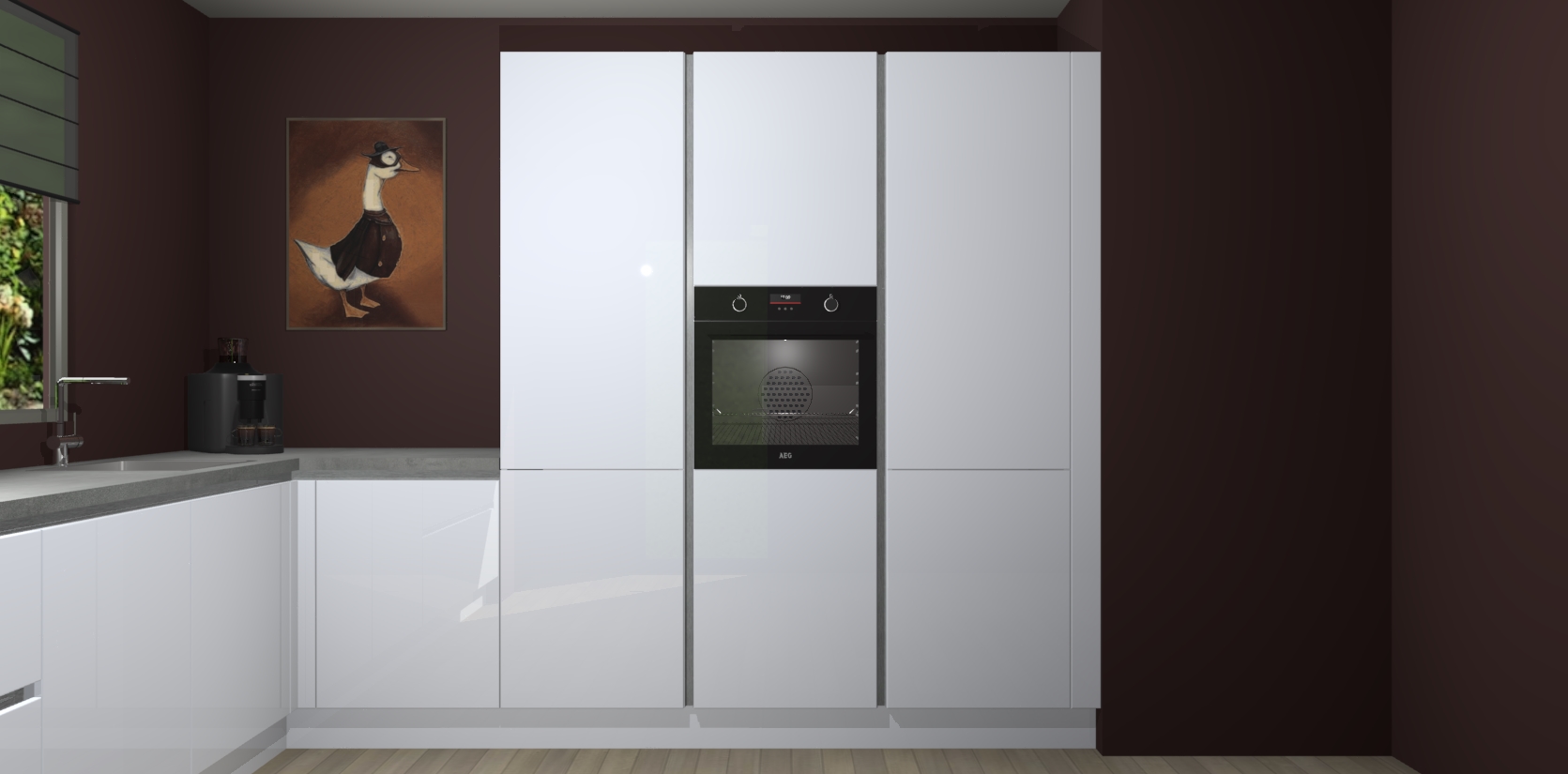 Welkom bij de Sneeuwwitte hoogglans greeploze keuken Laos. Deze prachtige keuken zal de komende jaren het middelpunt van de belangstelling in uw huis zijn. Uitgerust met vijf inbouwapparaten komt u nooit kookgereedschap tekort. Bovendien geeft de warme houtlook elke ruimte een uitnodigende en tijdloze uitstraling.