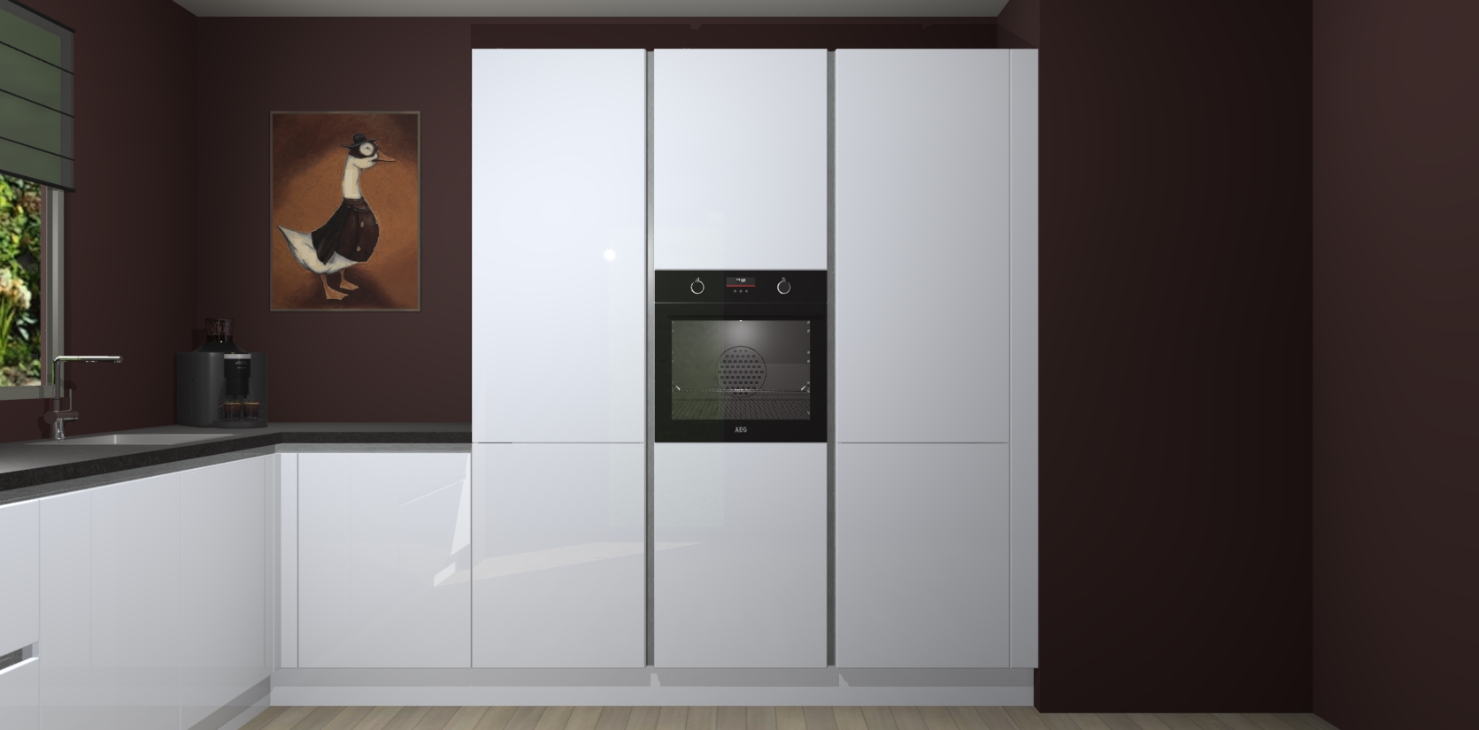 Welkom bij de Sneeuwwitte hoogglans greeploze keuken Laos. Deze prachtige keuken zal de komende jaren het middelpunt van de belangstelling in uw huis zijn. Uitgerust met vijf inbouwapparaten komt u nooit kookgereedschap tekort. Bovendien geeft de warme houtlook elke ruimte een uitnodigende en tijdloze uitstraling.