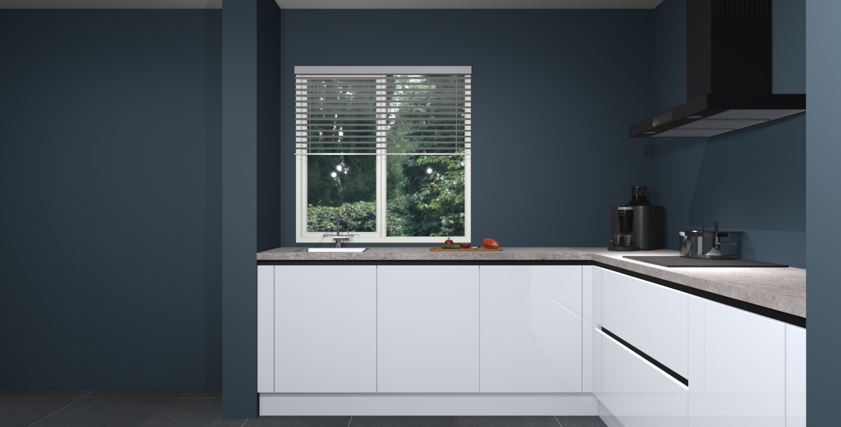 Met een modern, tijdloos design en ruime opslagruimte, zult u zich in no-time thuis voelen in uw nieuwe keuken. Uw leven wordt eenvoudiger met de soft-close deuren die voor het ultieme stille comfort zorgen - geen geluid dat u stoort terwijl u kookt. Ook is de keuken voorzien van 5 ingebouwde apparaten: een oven, inductie kookplaat, afzuigkap, vaatwasser en koelkast. Deze kunnen gemakkelijk na bestelling worden bijgewerkt naar AEG - waardoor uw luxe ervaring compleet is.