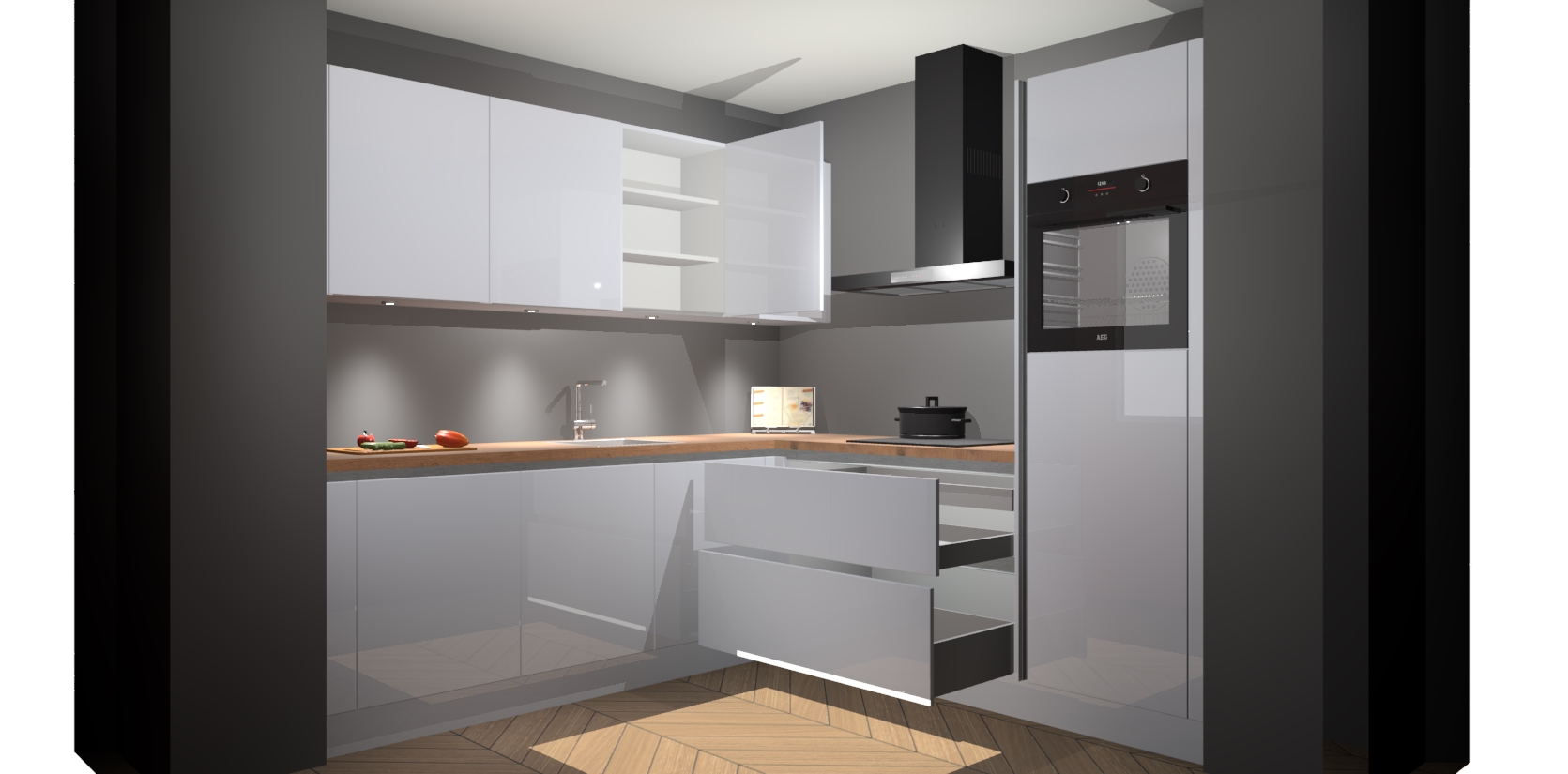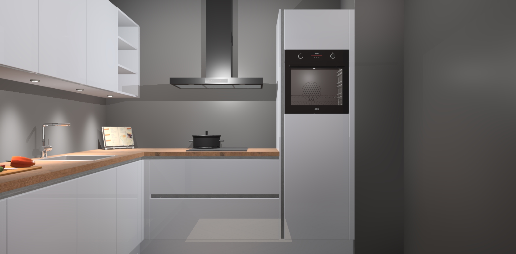 Met een modern, tijdloos design en ruime opslagruimte, zult u zich in no-time thuis voelen in uw nieuwe keuken. Uw leven wordt eenvoudiger met de soft-close deuren die voor het ultieme stille comfort zorgen - geen geluid dat u stoort terwijl u kookt. Ook is de keuken voorzien van 5 ingebouwde apparaten: een oven, inductie kookplaat, afzuigkap, vaatwasser en koelkast. Deze kunnen gemakkelijk na bestelling worden bijgewerkt naar AEG - waardoor uw luxe ervaring compleet is.