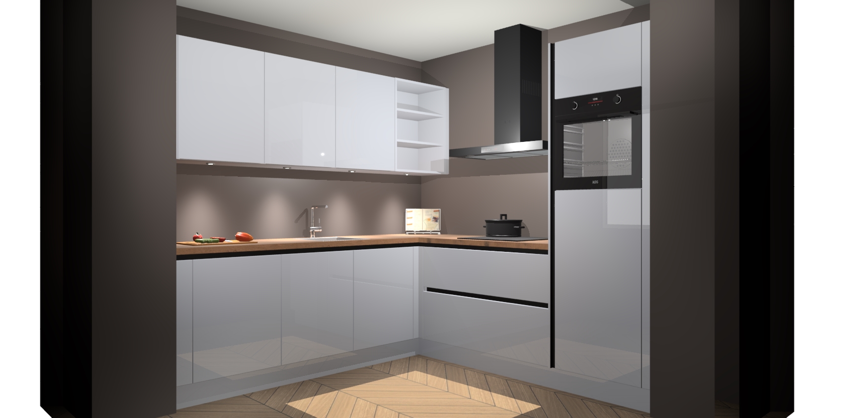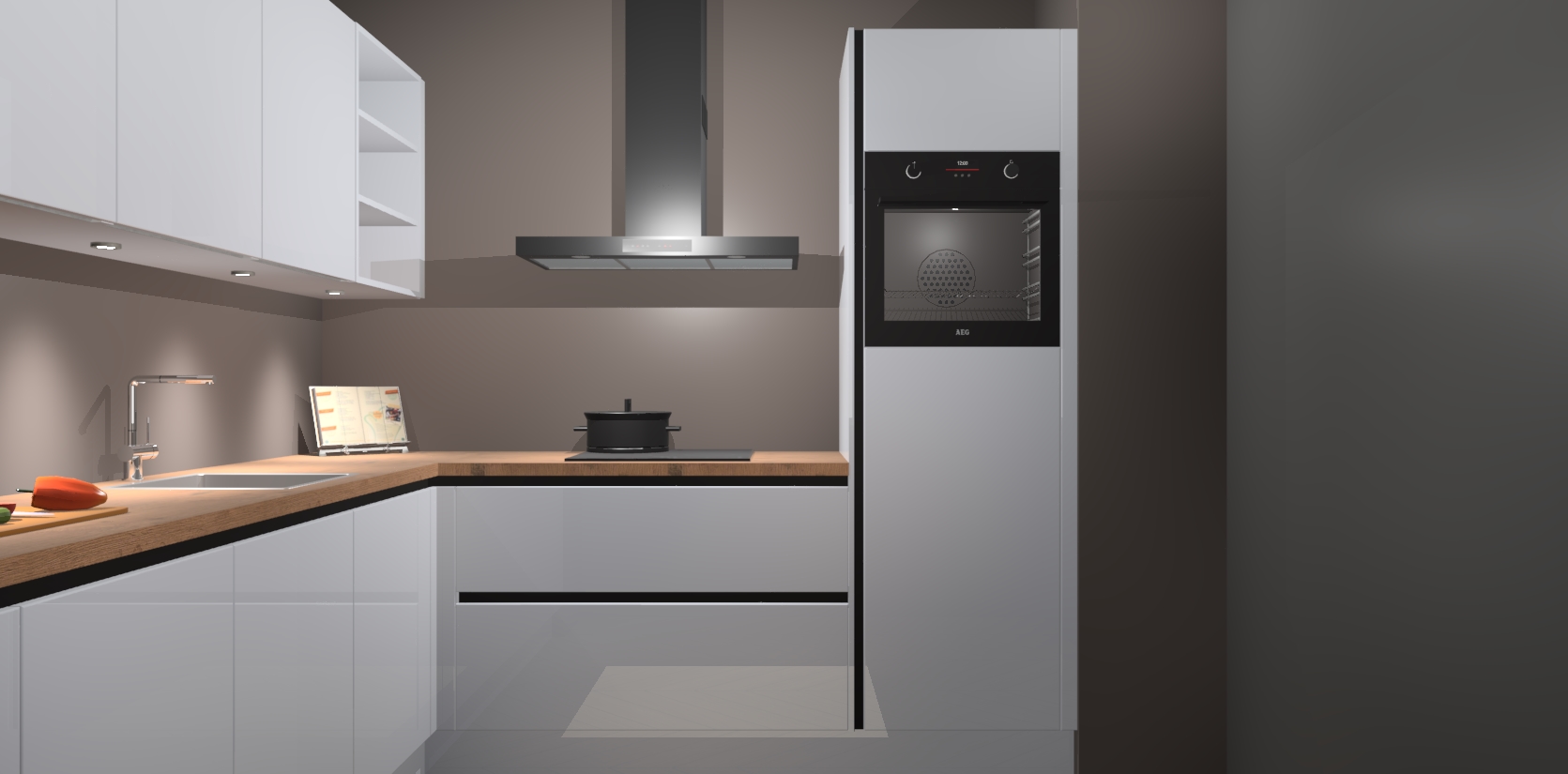 Met een modern, tijdloos design en ruime opslagruimte, zult u zich in no-time thuis voelen in uw nieuwe keuken. Uw leven wordt eenvoudiger met de soft-close deuren die voor het ultieme stille comfort zorgen - geen geluid dat u stoort terwijl u kookt. Ook is de keuken voorzien van 5 ingebouwde apparaten: een oven, inductie kookplaat, afzuigkap, vaatwasser en koelkast. Deze kunnen gemakkelijk na bestelling worden bijgewerkt naar AEG - waardoor uw luxe ervaring compleet is.