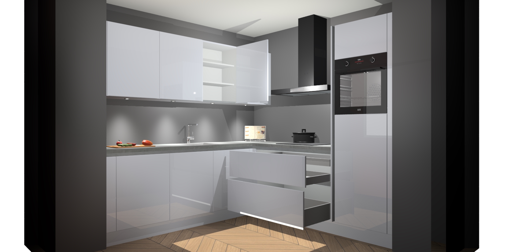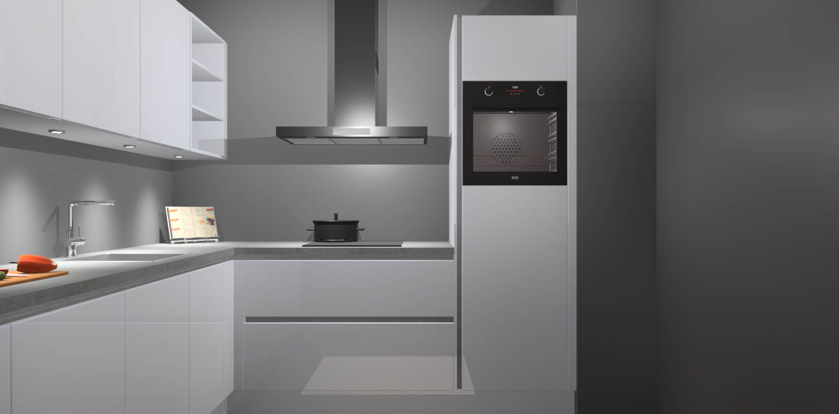 Met een modern, tijdloos design en ruime opslagruimte, zult u zich in no-time thuis voelen in uw nieuwe keuken. Uw leven wordt eenvoudiger met de soft-close deuren die voor het ultieme stille comfort zorgen - geen geluid dat u stoort terwijl u kookt. Ook is de keuken voorzien van 5 ingebouwde apparaten: een oven, inductie kookplaat, afzuigkap, vaatwasser en koelkast. Deze kunnen gemakkelijk na bestelling worden bijgewerkt naar AEG - waardoor uw luxe ervaring compleet is.
