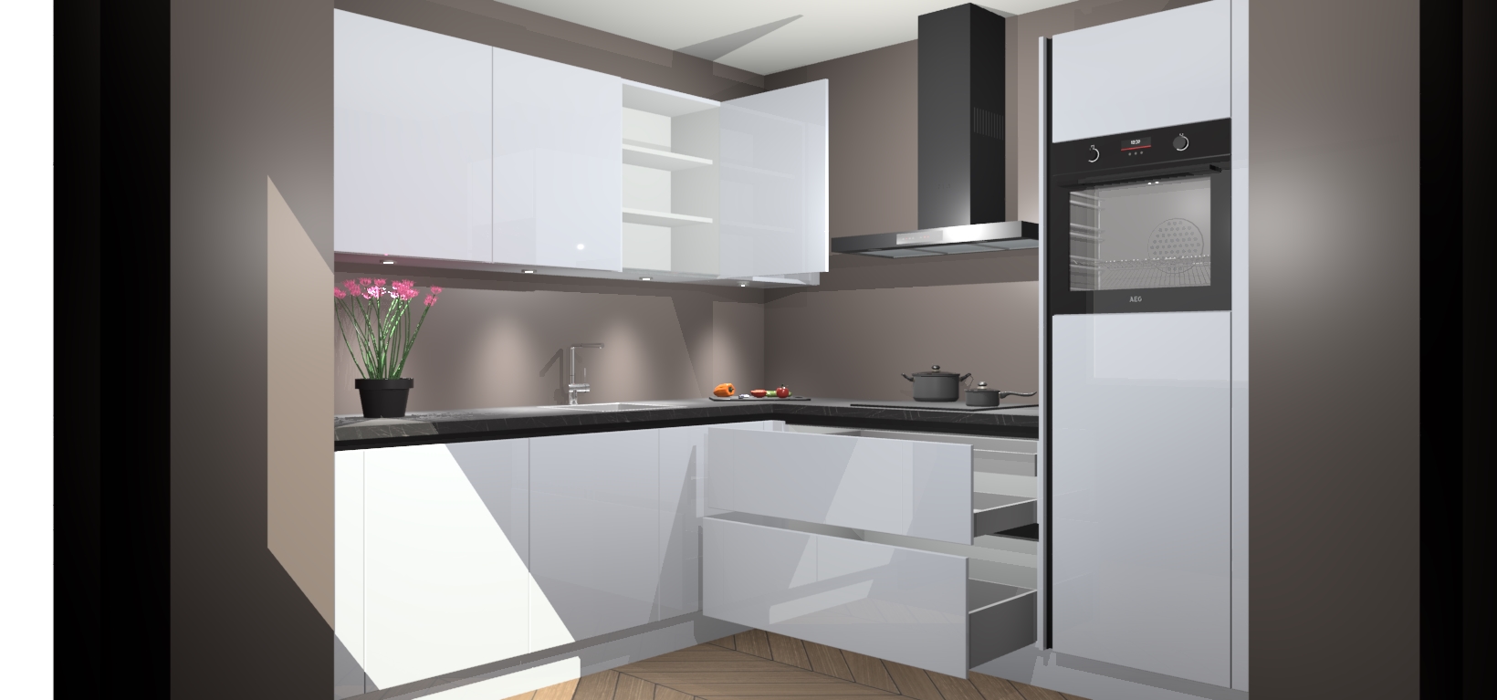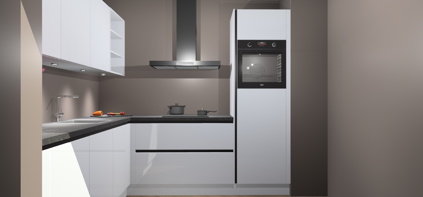 Met een modern, tijdloos design en ruime opslagruimte, zult u zich in no-time thuis voelen in uw nieuwe keuken. Uw leven wordt eenvoudiger met de soft-close deuren die voor het ultieme stille comfort zorgen - geen geluid dat u stoort terwijl u kookt. Ook is de keuken voorzien van 5 ingebouwde apparaten: een oven, inductie kookplaat, afzuigkap, vaatwasser en koelkast. Deze kunnen gemakkelijk na bestelling worden bijgewerkt naar AEG - waardoor uw luxe ervaring compleet is.