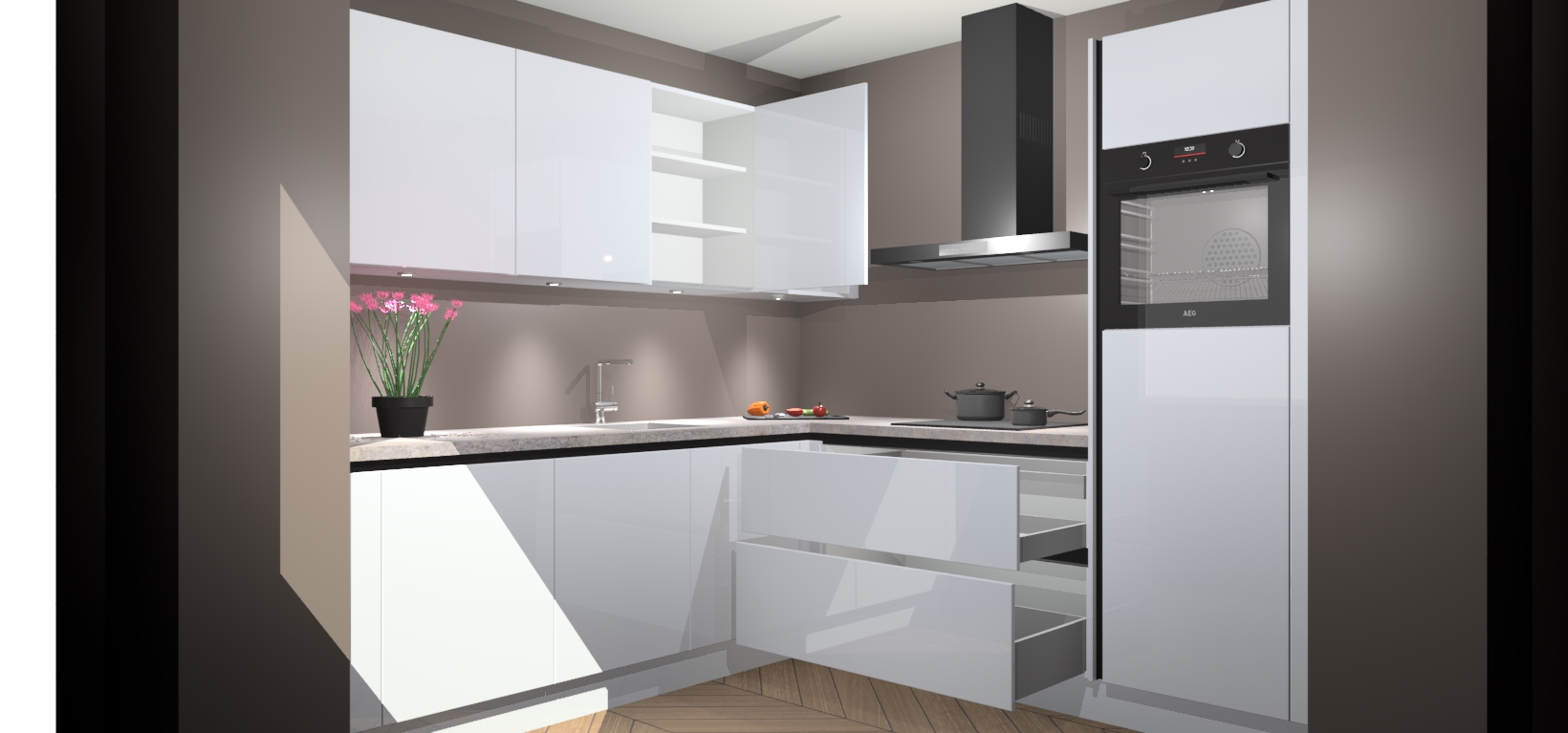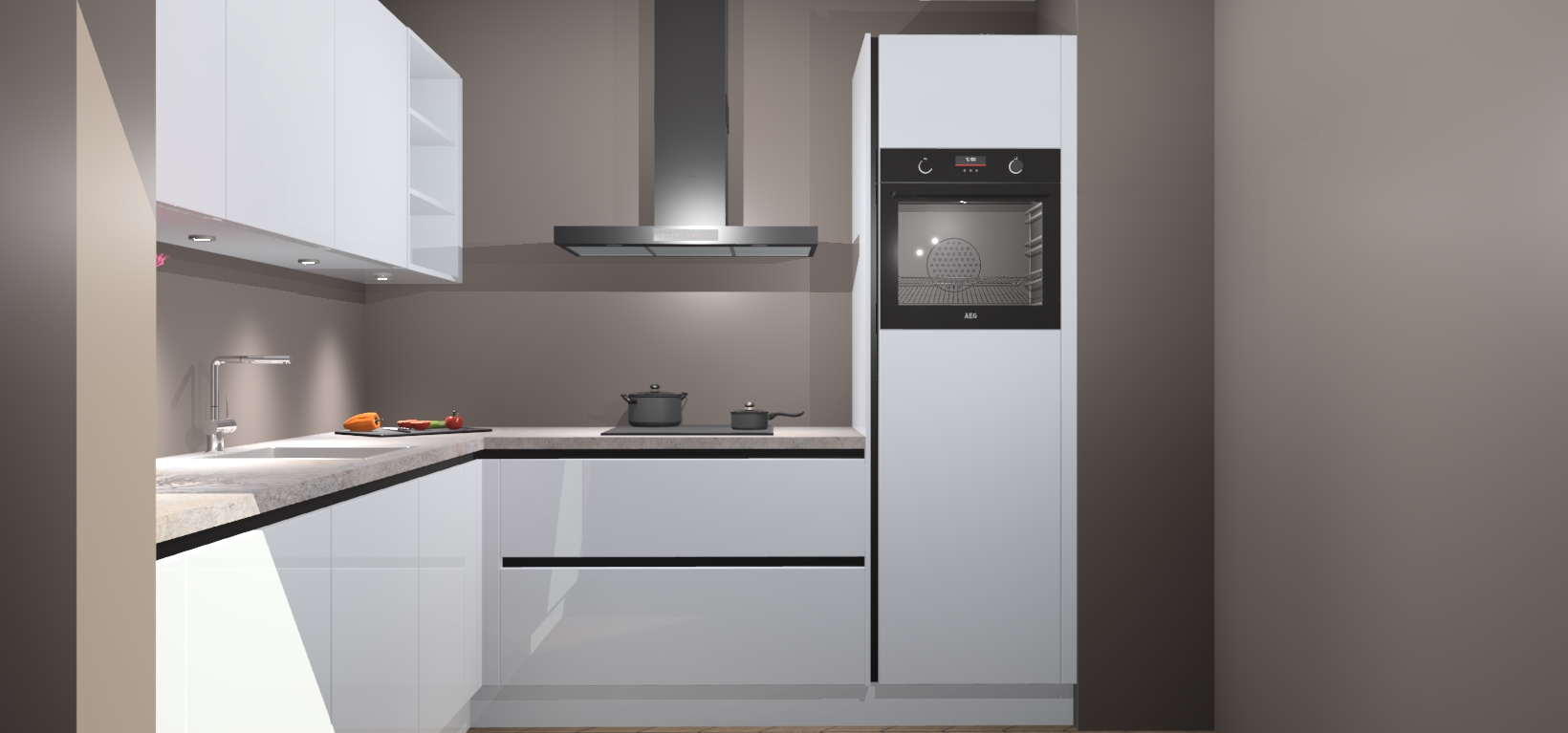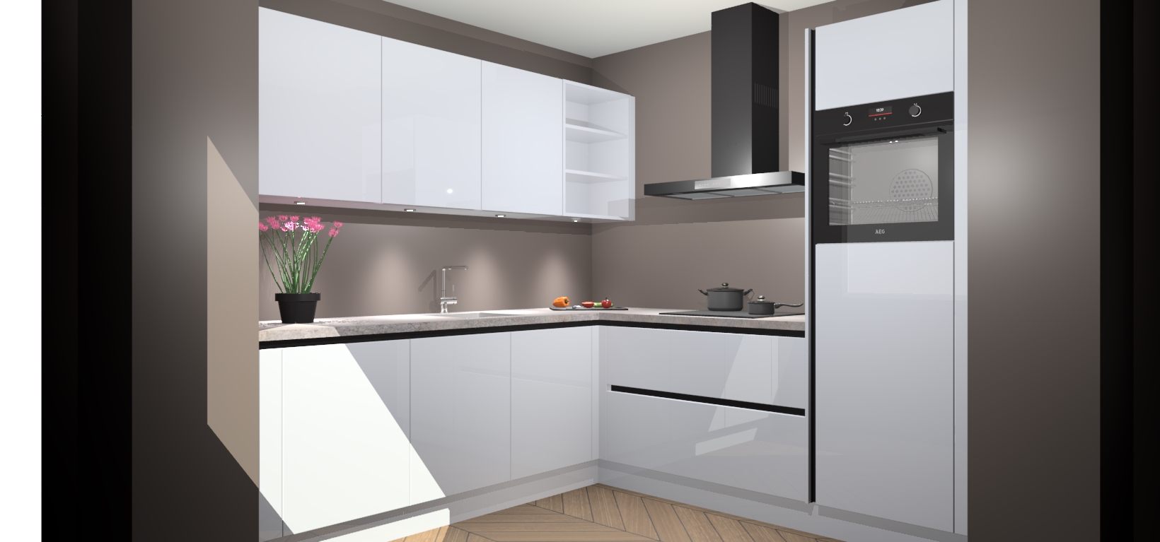 Met een modern, tijdloos design en ruime opslagruimte, zult u zich in no-time thuis voelen in uw nieuwe keuken. Uw leven wordt eenvoudiger met de soft-close deuren die voor het ultieme stille comfort zorgen - geen geluid dat u stoort terwijl u kookt. Ook is de keuken voorzien van 5 ingebouwde apparaten: een oven, inductie kookplaat, afzuigkap, vaatwasser en koelkast. Deze kunnen gemakkelijk na bestelling worden bijgewerkt naar AEG - waardoor uw luxe ervaring compleet is.