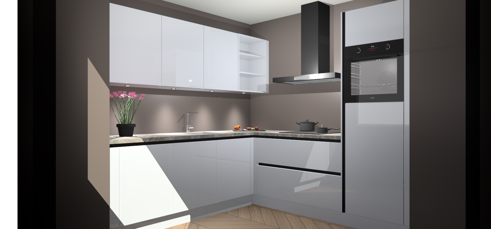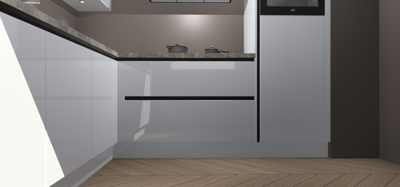 Met een modern, tijdloos design en ruime opslagruimte, zult u zich in no-time thuis voelen in uw nieuwe keuken. Uw leven wordt eenvoudiger met de soft-close deuren die voor het ultieme stille comfort zorgen - geen geluid dat u stoort terwijl u kookt. Ook is de keuken voorzien van 5 ingebouwde apparaten: een oven, inductie kookplaat, afzuigkap, vaatwasser en koelkast. Deze kunnen gemakkelijk na bestelling worden bijgewerkt naar AEG - waardoor uw luxe ervaring compleet is.