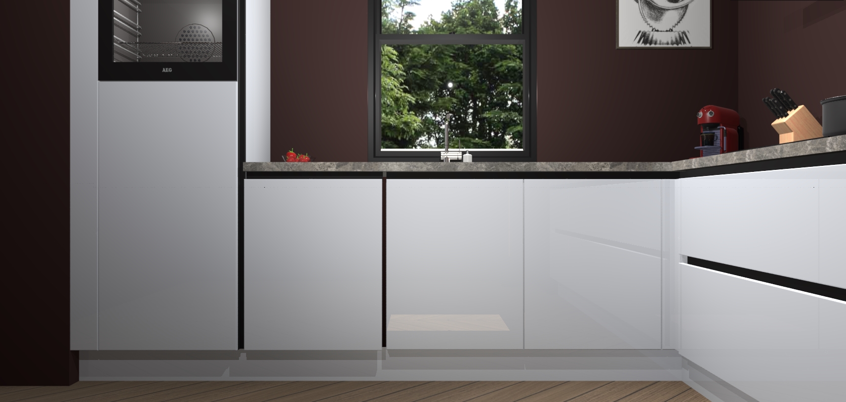 Welkom bij de sneeuwwitte hoogglans greeploze keuken Lublin. Deze prachtige keuken zal de komende jaren het middelpunt van de belangstelling in uw huis zijn. Uitgerust met vijf inbouwapparaten komt u nooit kookgereedschap tekort. Bovendien geeft de warme houtlook elke ruimte een uitnodigende en tijdloze uitstraling.