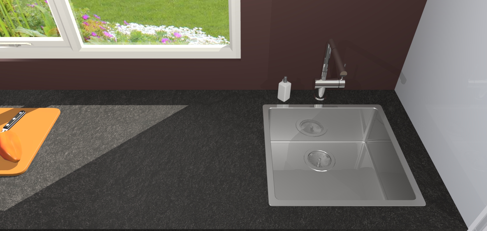 - De spoelbak is nog niet in gevreesd. Dit dient tijdens het werk gedaan te worden