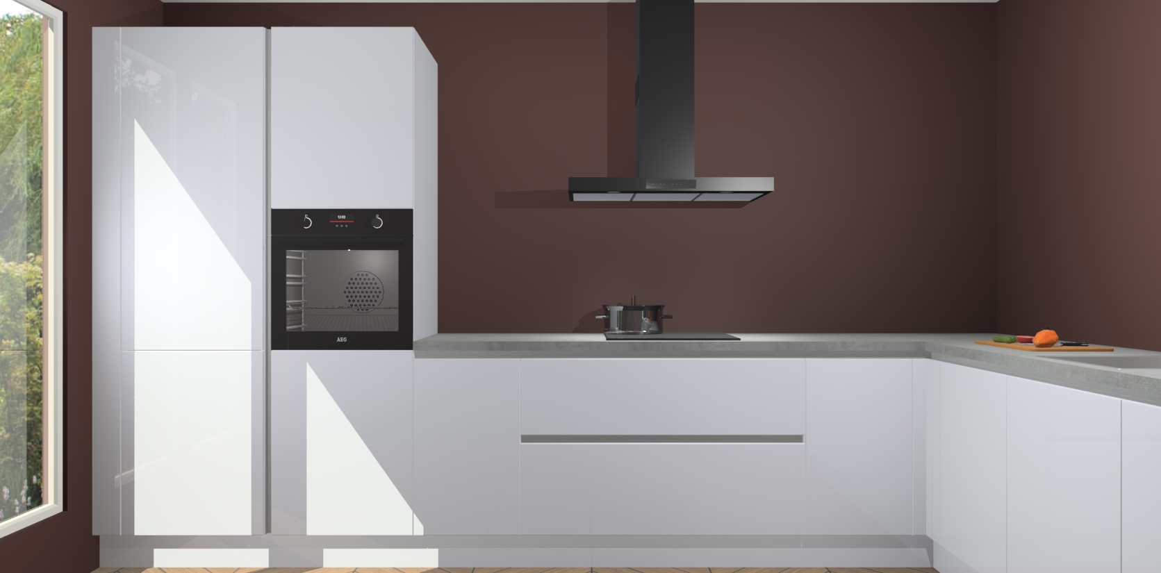 Met een modern, tijdloos design en ruime opslagruimte, zult u zich in no-time thuis voelen in uw nieuwe keuken. Uw leven wordt eenvoudiger met de soft-close deuren die voor het ultieme stille comfort zorgen - geen geluid dat u stoort terwijl u kookt. Ook is de keuken voorzien van 5 ingebouwde apparaten: een oven, inductie kookplaat, afzuigkap, vaatwasser en koelkast. Deze kunnen gemakkelijk na bestelling worden bijgewerkt naar AEG - waardoor uw luxe ervaring compleet is.