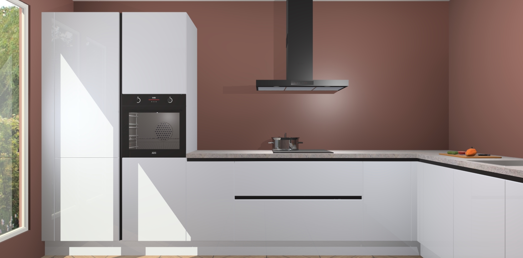 Met een modern, tijdloos design en ruime opslagruimte, zult u zich in no-time thuis voelen in uw nieuwe keuken. Uw leven wordt eenvoudiger met de soft-close deuren die voor het ultieme stille comfort zorgen - geen geluid dat u stoort terwijl u kookt. Ook is de keuken voorzien van 5 ingebouwde apparaten: een oven, inductie kookplaat, afzuigkap, vaatwasser en koelkast. Deze kunnen gemakkelijk na bestelling worden bijgewerkt naar AEG - waardoor uw luxe ervaring compleet is.