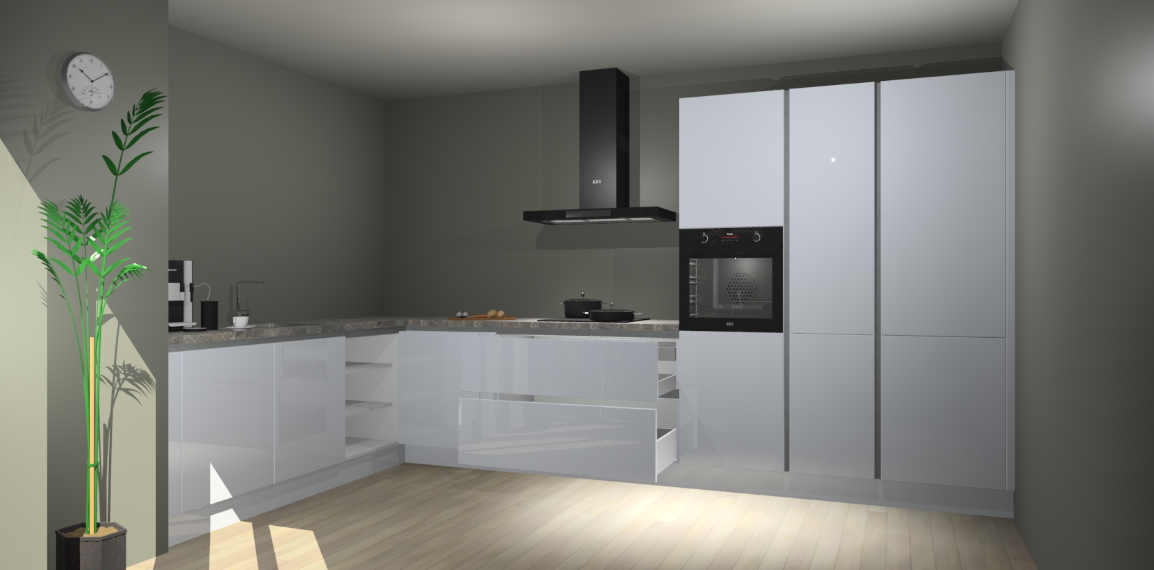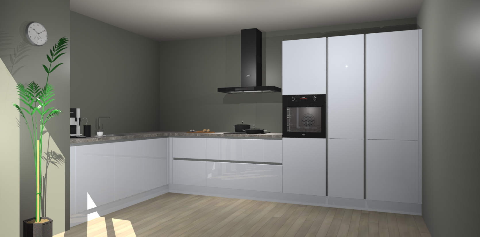 Welkom bij de sneeuwwitte hoogglans greeploze keuken Nuuk. Deze prachtige keuken zal de komende jaren het middelpunt van de belangstelling in uw huis zijn. Uitgerust met vijf inbouwapparaten komt u nooit kookgereedschap tekort.