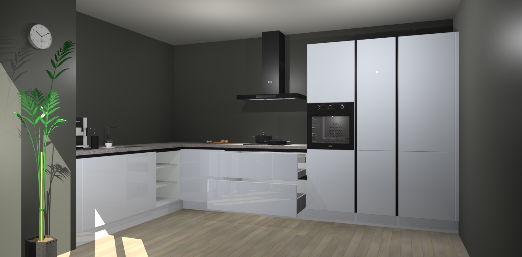 Welkom bij de sneeuwwitte hoogglans greeploze keuken Nuuk. Deze prachtige keuken zal de komende jaren het middelpunt van de belangstelling in uw huis zijn. Uitgerust met vijf inbouwapparaten komt u nooit kookgereedschap tekort.