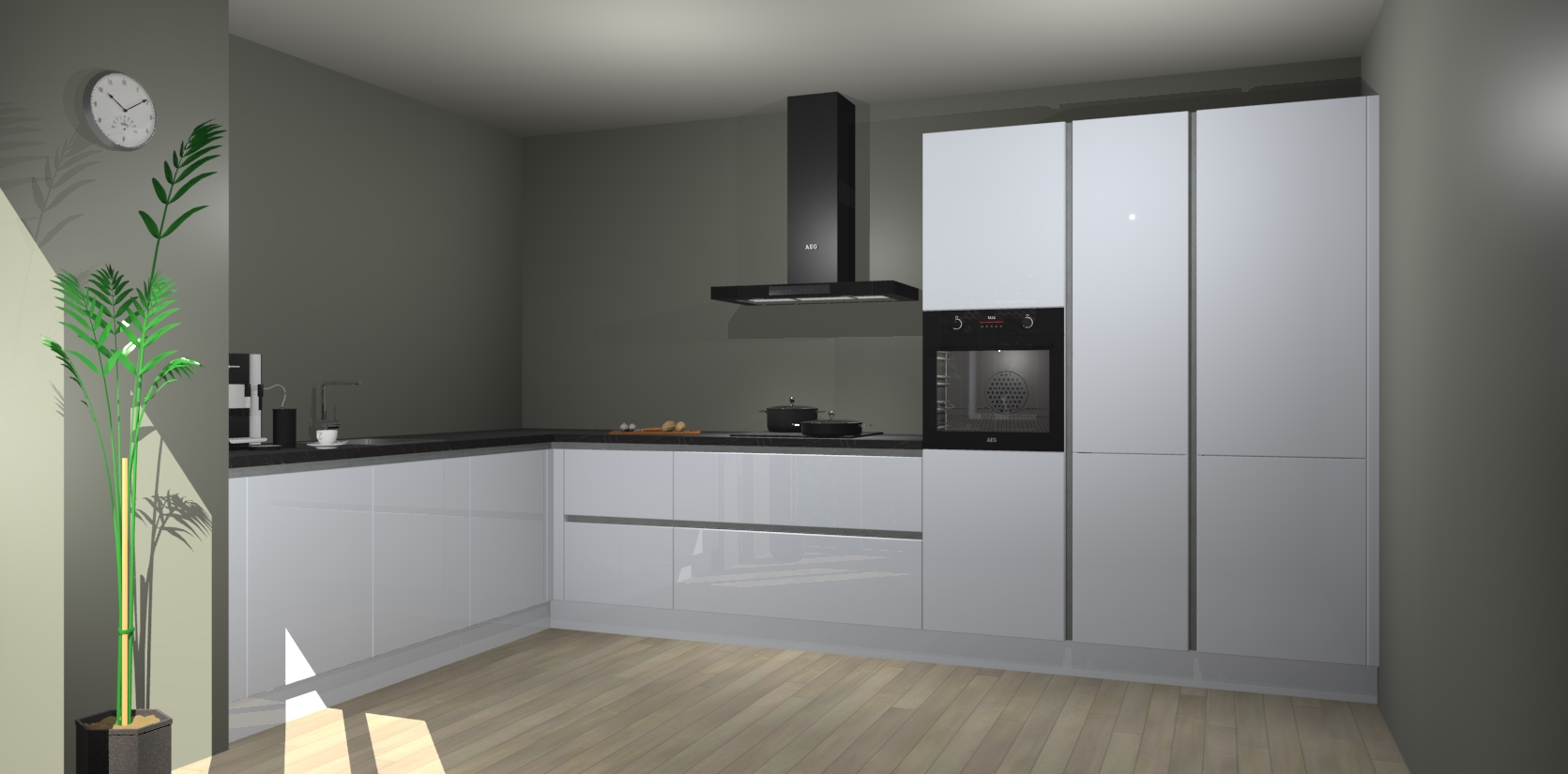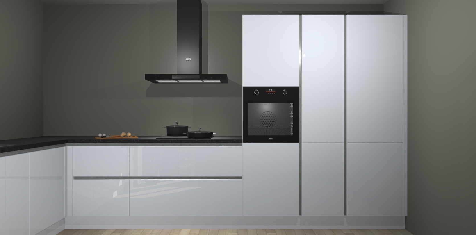 Welkom bij de sneeuwwitte hoogglans greeploze keuken Nuuk. Deze prachtige keuken zal de komende jaren het middelpunt van de belangstelling in uw huis zijn. Uitgerust met vijf inbouwapparaten komt u nooit kookgereedschap tekort.