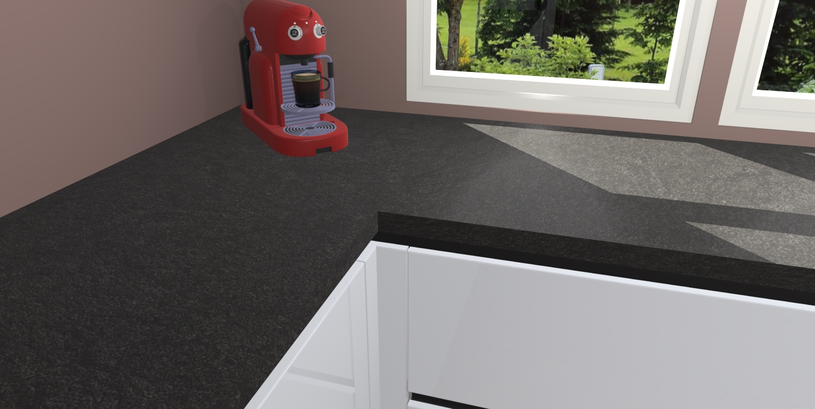 - Bij een hoekwerkblad zijn de hoeken in gevreesd en op maat gemaakt