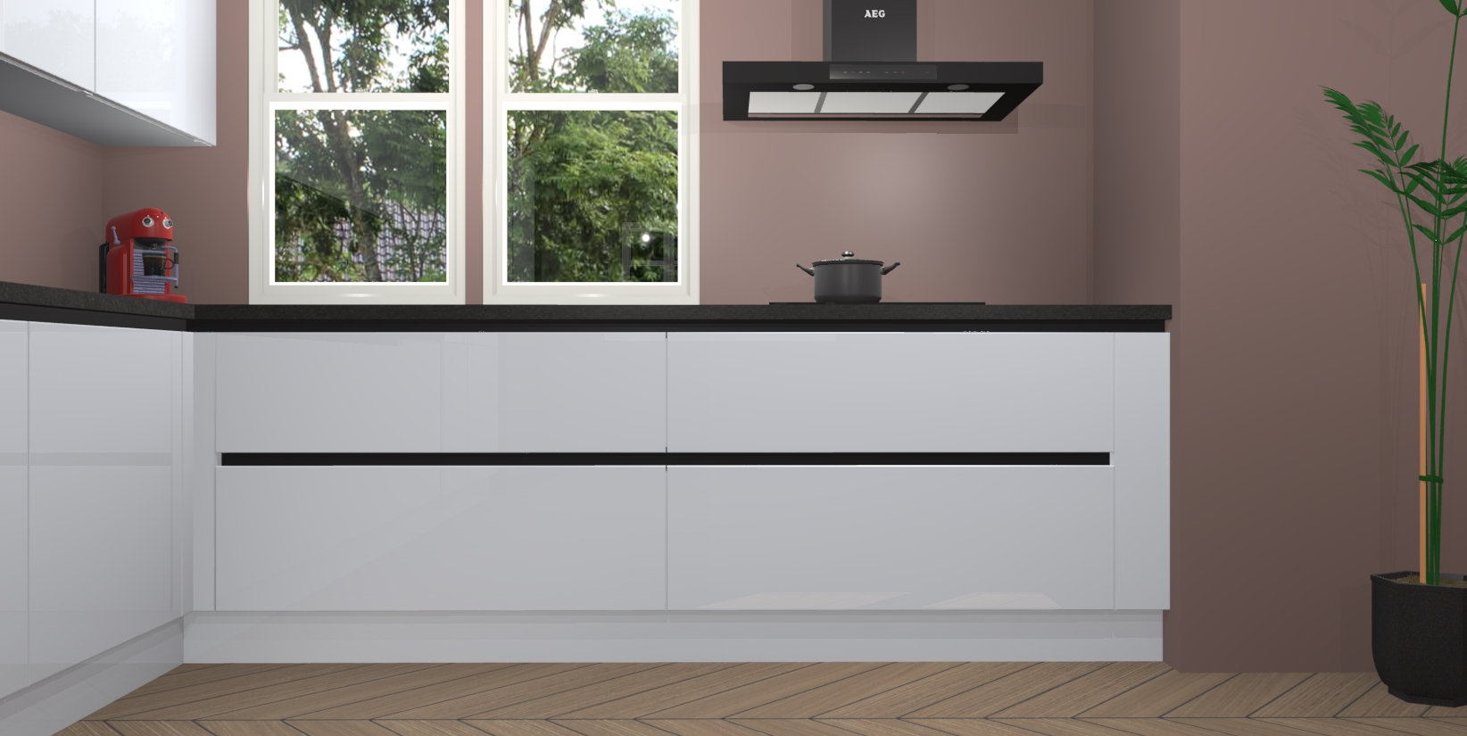 Door het stijlvolle, minimalistische design van de populairste keukens van dit moment te combineren met het gemak en de functionaliteit, heeft u veel opbergruimte en een opgeruimd werkblad. Met de extra bonus van softclose deuren biedt deze witte keuken een eigentijdse maar functionele omgeving voor al uw culinaire behoeften.