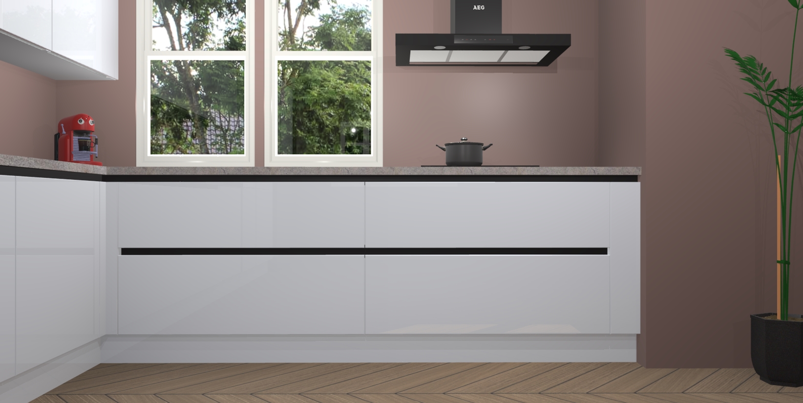 Inclusief plinten, stelpoten en werkblad