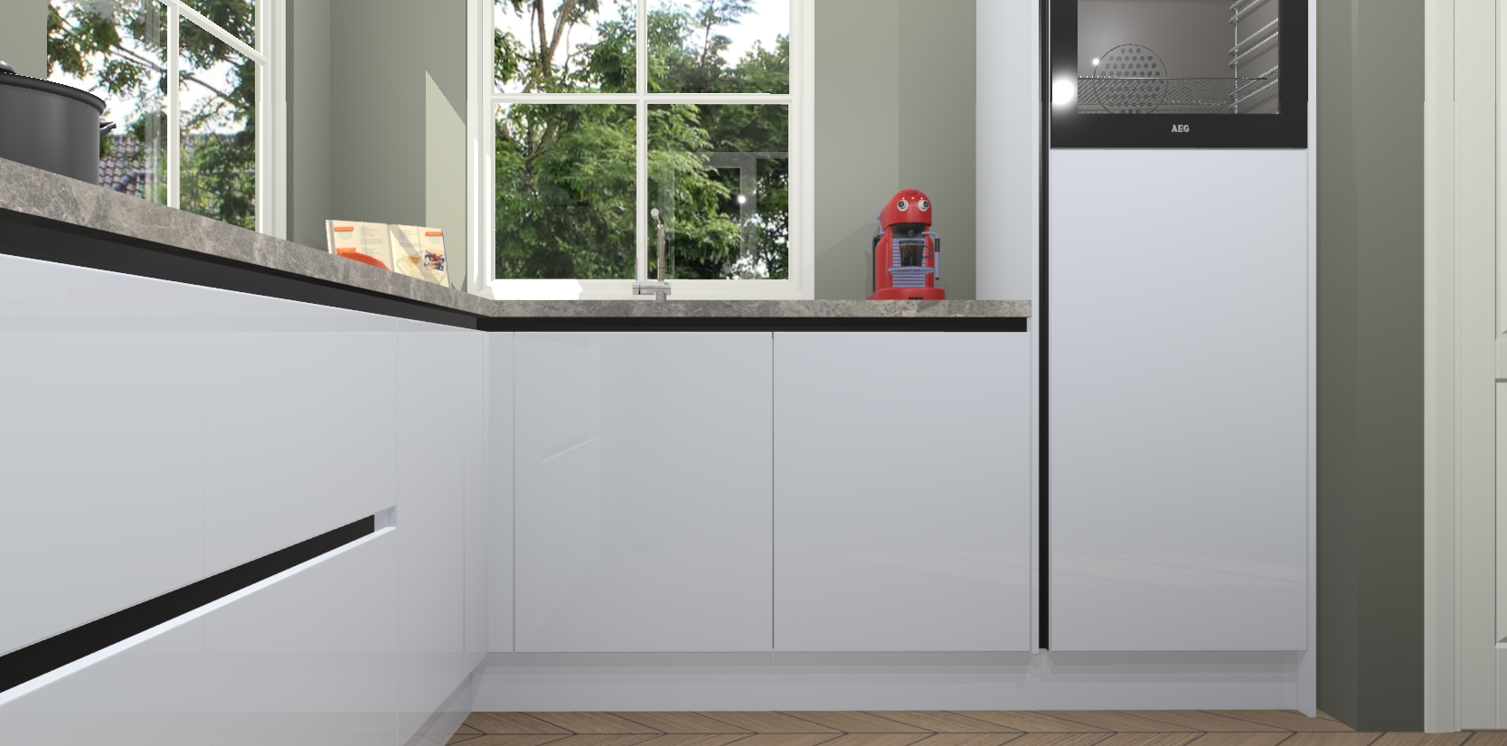 De Sneeuwwitte hoogglans greeploze keuken Pai bevat vijf essentiële inbouwapparaten - een oven, inductiekookplaat, afzuigkap, vaatwasser en koelkast - zodat u er na levering meteen in kunt. Voor de slimme kopers die weten dat apparaten vaak het verschil kunnen maken tussen functioneel en luxueus, bieden we eenvoudige upgradeopties naar AEG, van oven naar combimagnetron na bestelling of naar een kookplaat met geïntrigeerde afzuiging. En met onze vaste lage prijs en snelle levering binnen zeven weken vanaf de orderbevestiging hoeft u zich geen zorgen te maken over verborgen kosten of lange levertijden die uw droomkeuken kunnen vertragen.