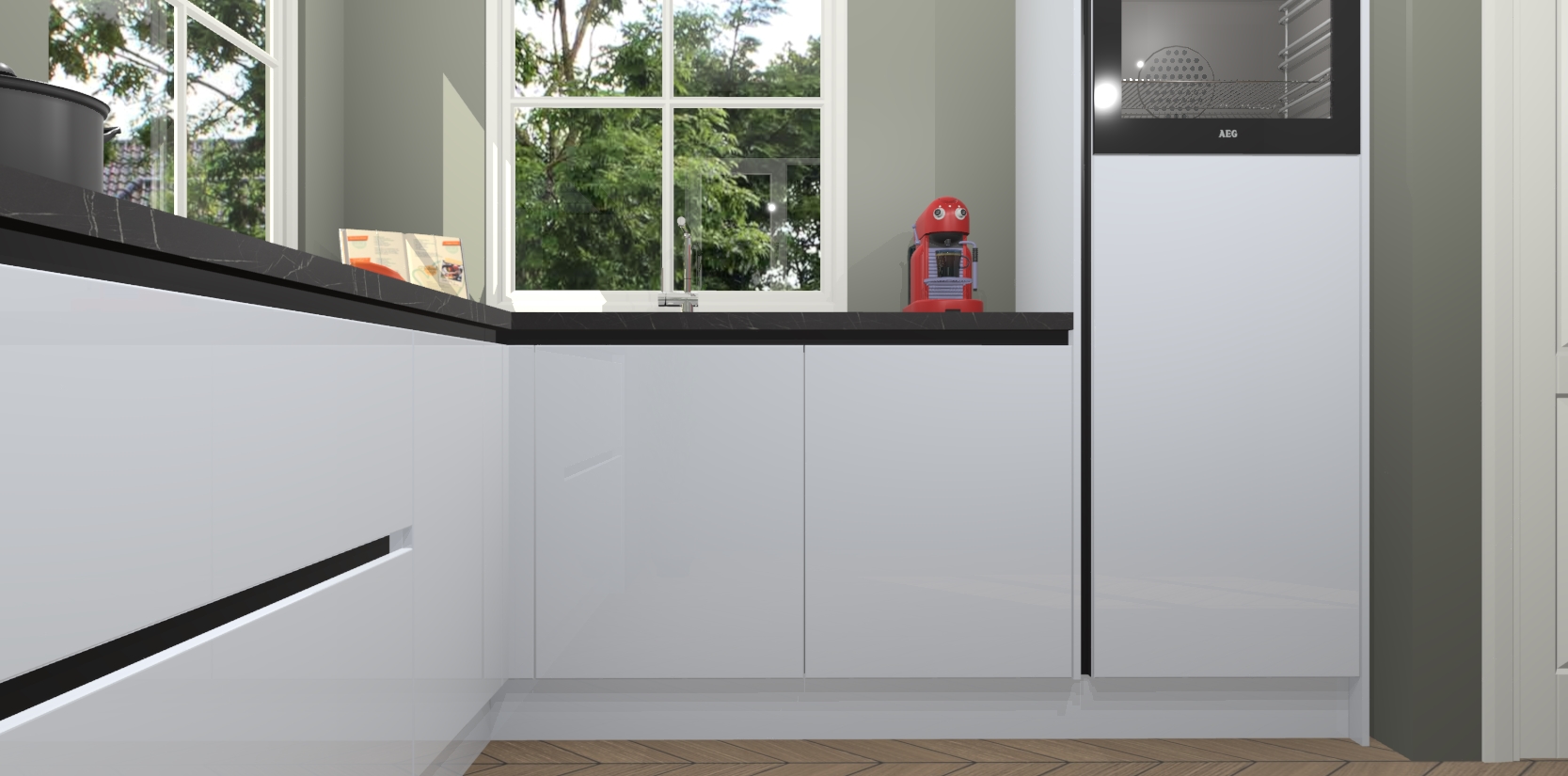 De Sneeuwwitte hoogglans greeploze keuken Pai bevat vijf essentiële inbouwapparaten - een oven, inductiekookplaat, afzuigkap, vaatwasser en koelkast - zodat u er na levering meteen in kunt. Voor de slimme kopers die weten dat apparaten vaak het verschil kunnen maken tussen functioneel en luxueus, bieden we eenvoudige upgradeopties naar AEG, van oven naar combimagnetron na bestelling of naar een kookplaat met geïntrigeerde afzuiging. En met onze vaste lage prijs en snelle levering binnen zeven weken vanaf de orderbevestiging hoeft u zich geen zorgen te maken over verborgen kosten of lange levertijden die uw droomkeuken kunnen vertragen.