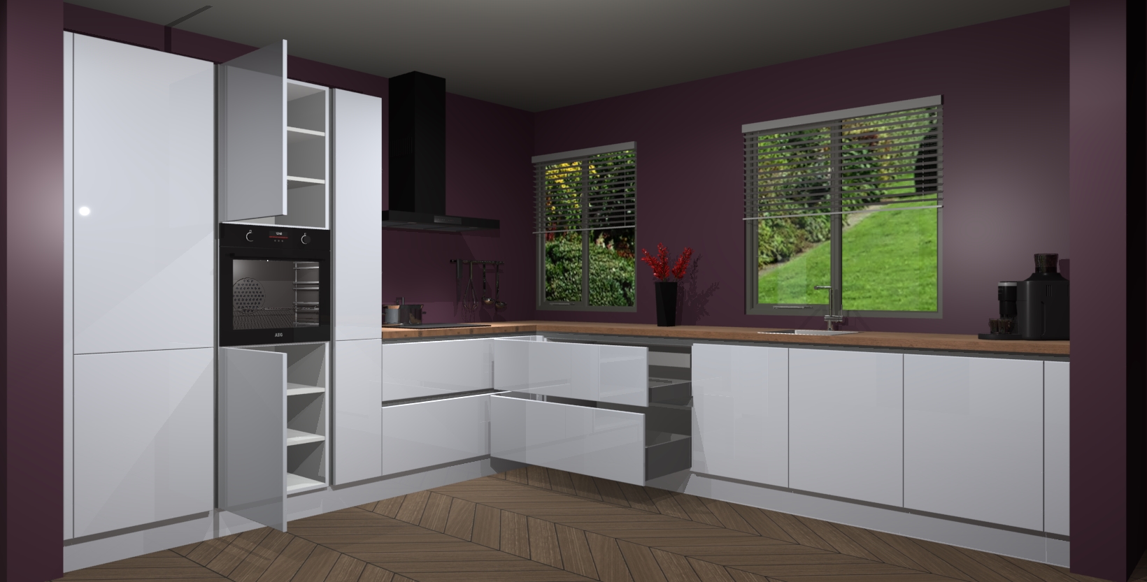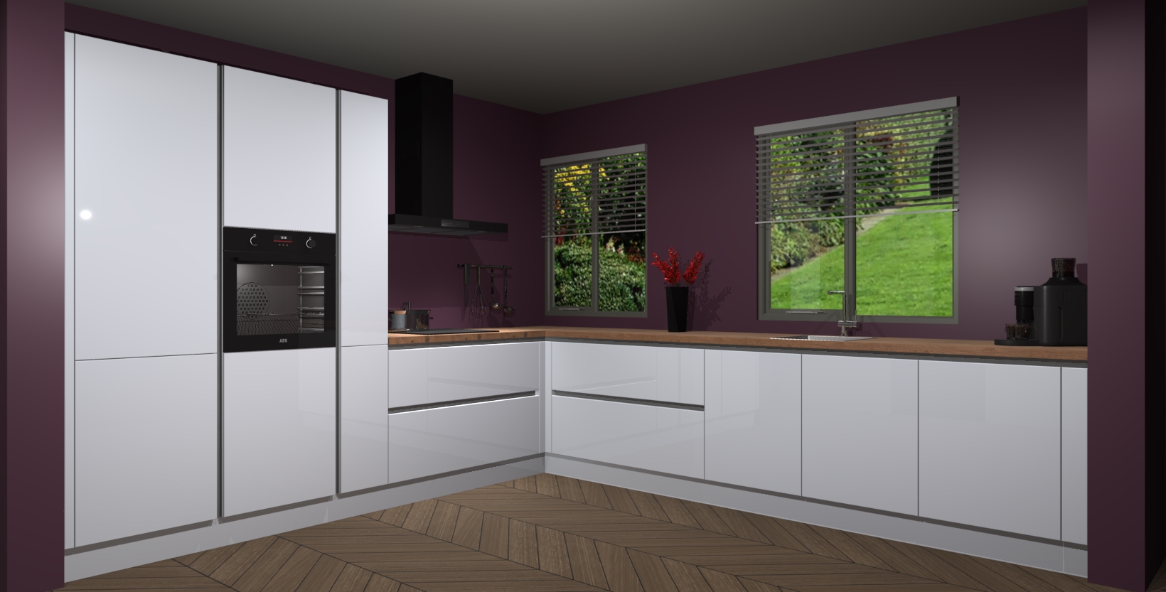 Welkom bij de Sneeuwwitte hoogglans keuken Palermo. Deze prachtige keuken zal de komende jaren het middelpunt van de belangstelling in uw huis zijn. Uitgerust met vijf inbouwapparaten komt u nooit kookgereedschap tekort. Bovendien geeft de warme houtlook elke ruimte een uitnodigende en tijdloze uitstraling.