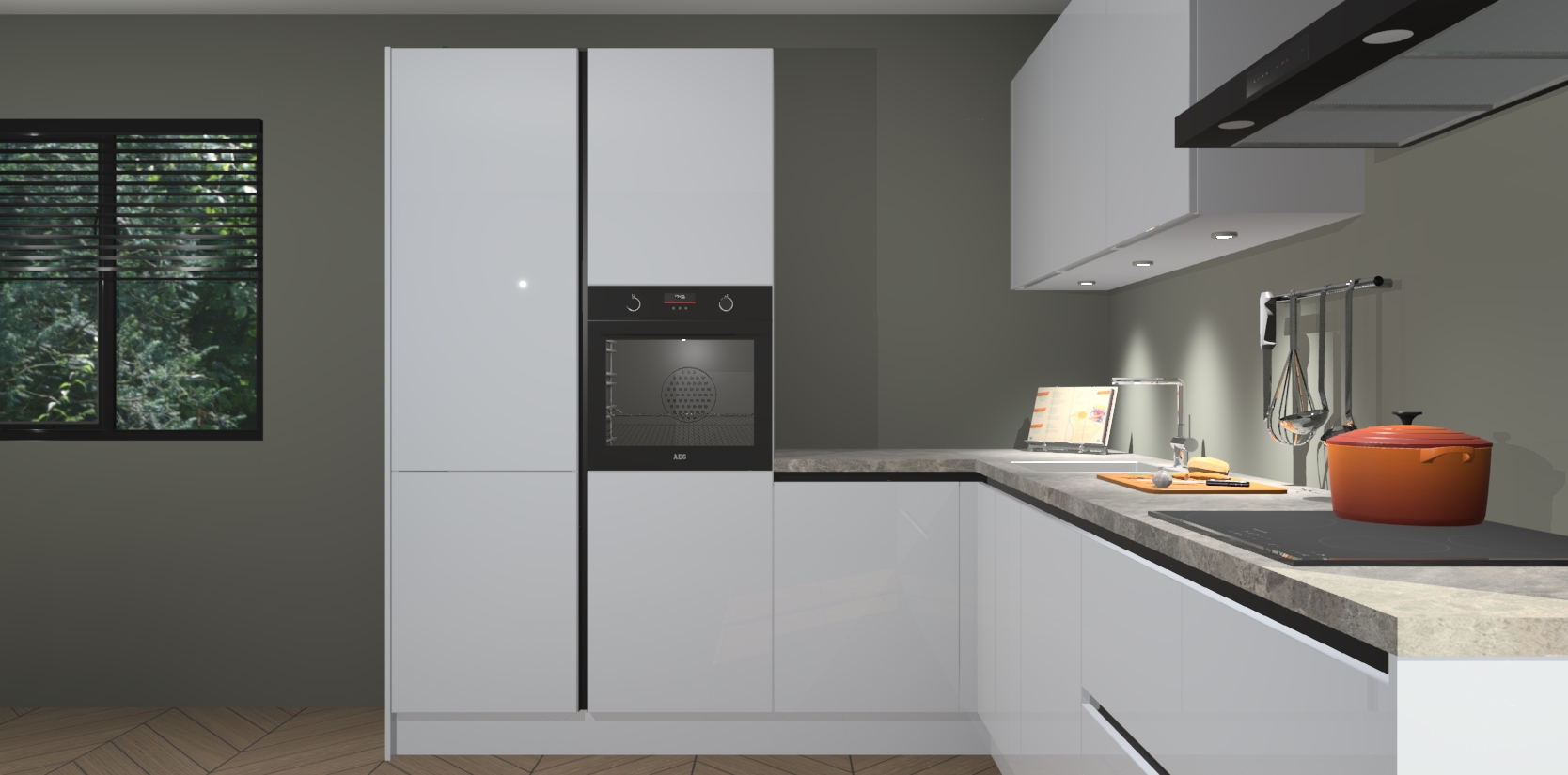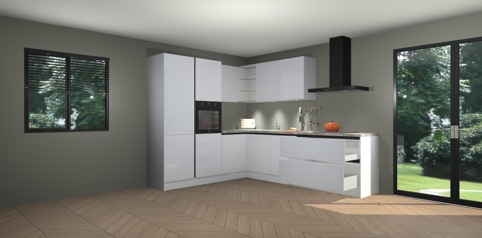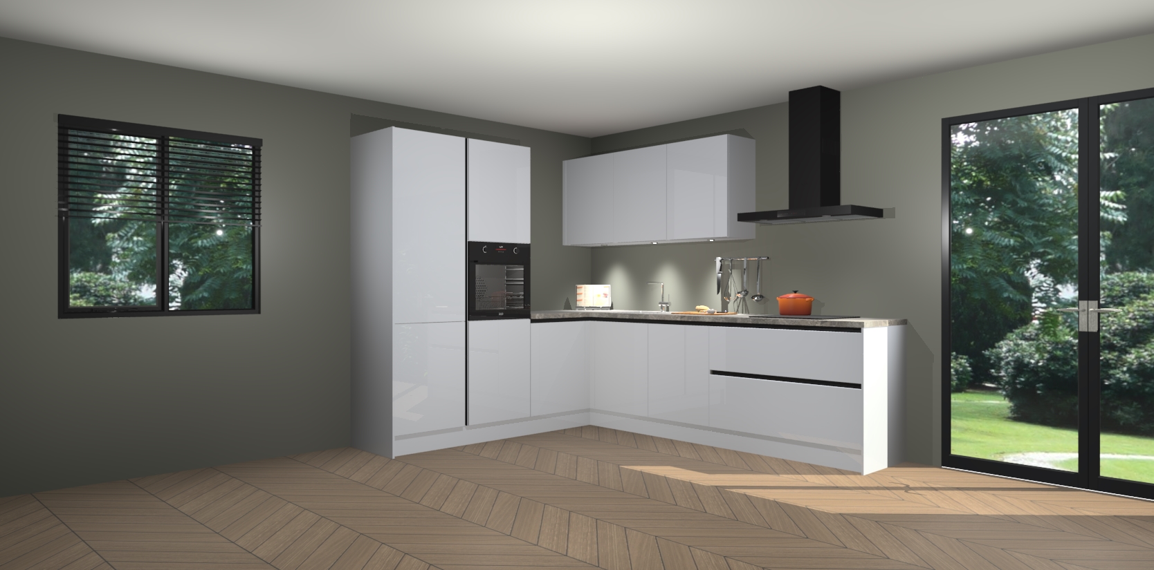 Maak kennis met de sneeuwwitte hoogglans greeploze keuken Parla - de perfecte aanvulling voor uw moderne keuken! Ervaar tijdloos design, elegantie en een chique uitstraling met onze zwarte handgrepen, soft-close deuren en veel opbergruimte. Dit alles wordt aangeboden tegen een vaste lage prijs voor ongeëvenaarde Duitse keukenkwaliteit!
