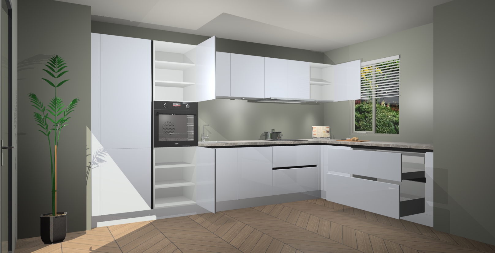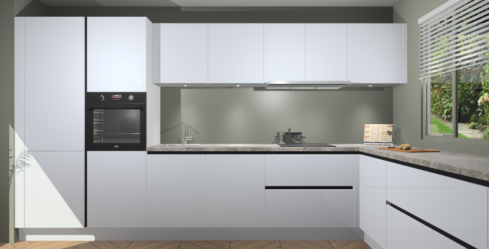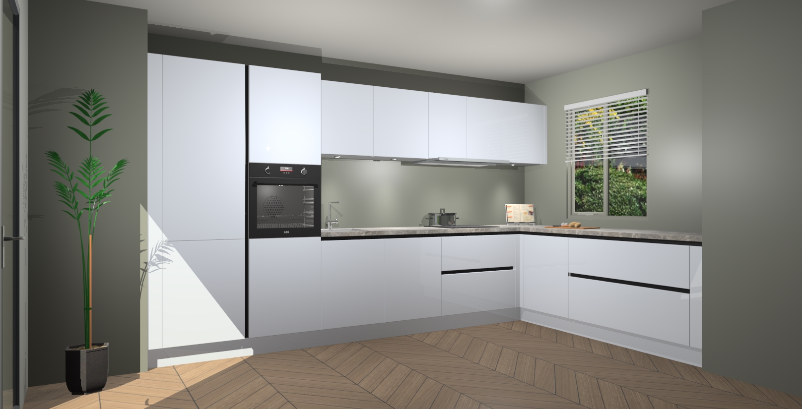 Verwelkom de natuurlijke warmte van de Sneeuwwitte Hoogglans greeploze keuken Petten in uw huis. Deze prachtige hoekkeuken met zijn moderne design en warme houten look geeft u meer dan genoeg opbergruimte om uw comfortabel te voelen in uw keuken. Geniet van soft-close deuren die al uw gasten het gevoel zullen geven dat ze zich in een luxueuze ruimte bevinden.