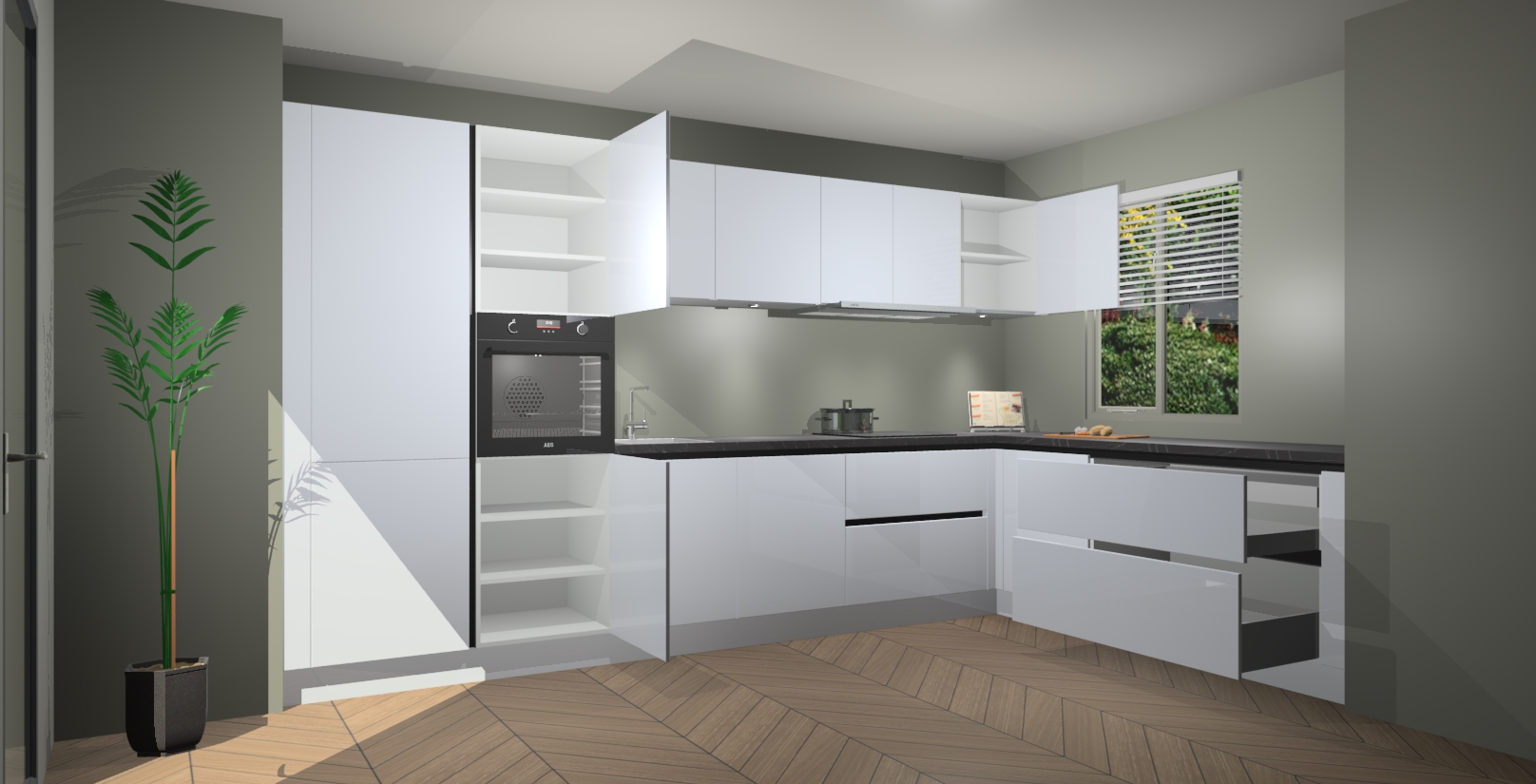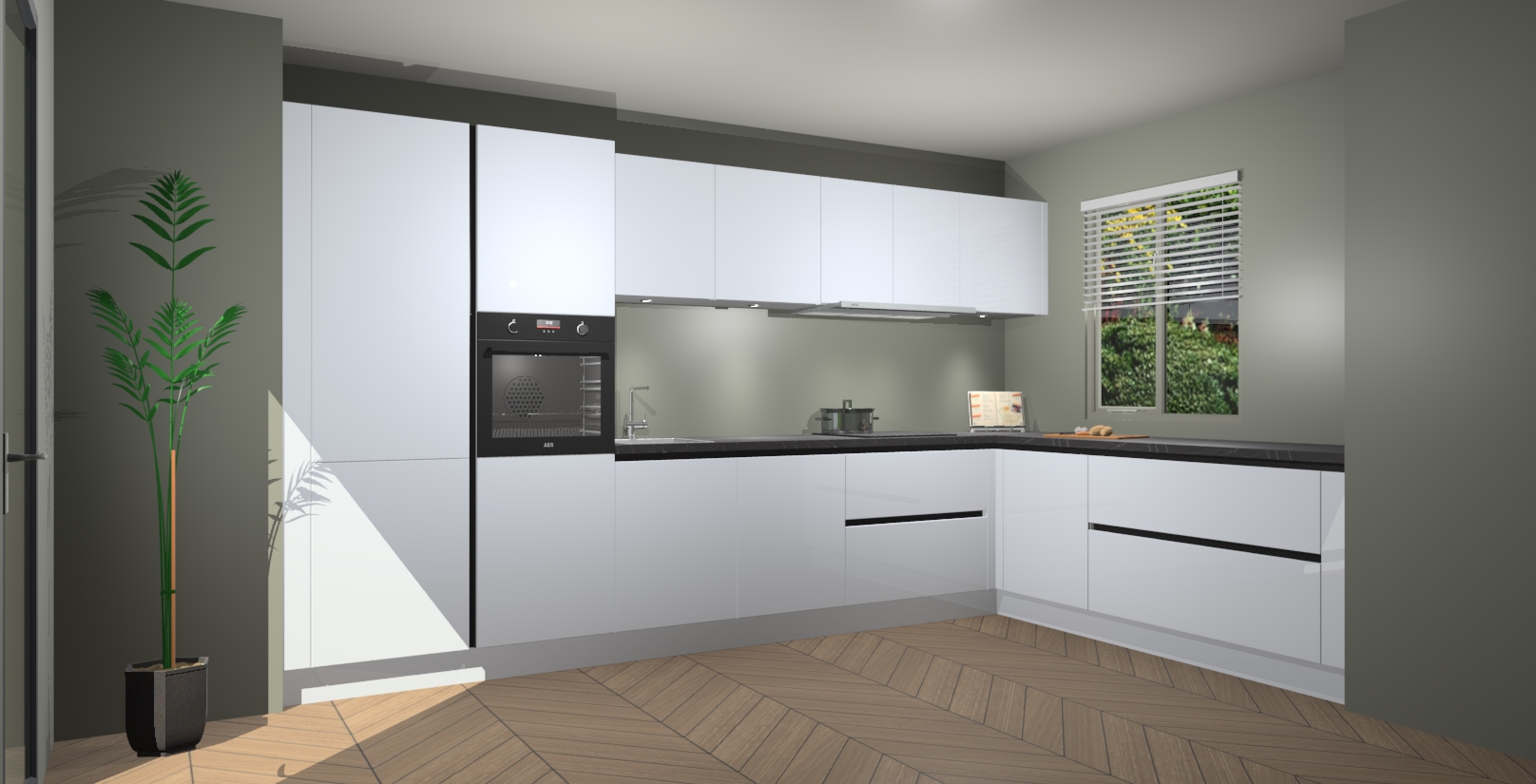 Verwelkom de natuurlijke warmte van de Sneeuwwitte Hoogglans greeploze keuken Petten in uw huis. Deze prachtige hoekkeuken met zijn moderne design en warme houten look geeft u meer dan genoeg opbergruimte om uw comfortabel te voelen in uw keuken. Geniet van soft-close deuren die al uw gasten het gevoel zullen geven dat ze zich in een luxueuze ruimte bevinden.
