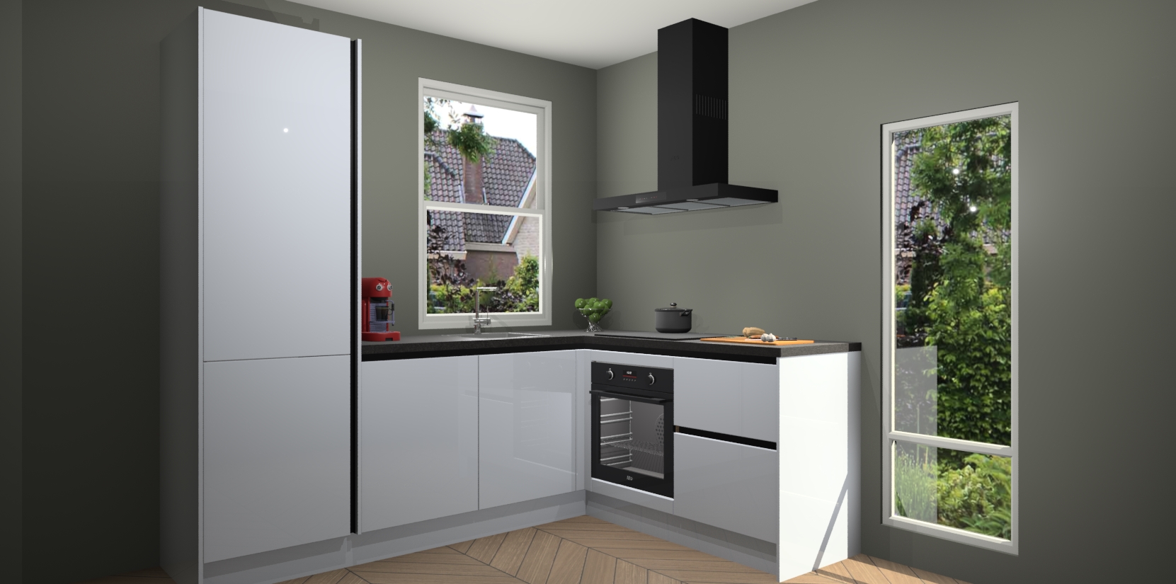 De Sneeuwwitte hoogglans greeploze keuken Phuket heeft alles wat u maar kunt wensen. Niet alleen zijn er softclose deuren, maar ook 5 ingebouwde apparaten: een oven, inductiekookplaat, afzuigkap, vaatwasser en koelkast - waarbij u later gemakkelijk naar het AEG merk, van inductiekookplaat naar kookplaat met geïntegreerde afzuiging of van oven naar combimagnetron kunt upgraden. Dat alles tegen een vast laag tarief! Bovendien geeft de Sneeuwwitte hoogglans greeploze keuken Phuket supersnelle levering van 7 weken. Echt iets voor u als u er niet op wilt wachten om het resultaat te zien in eigen keuken!