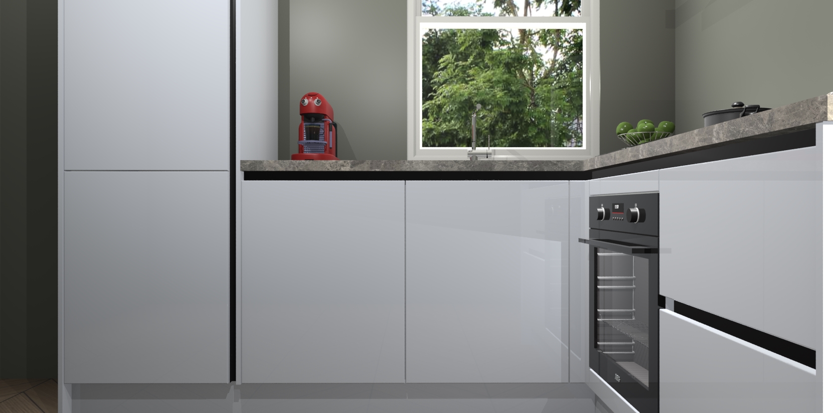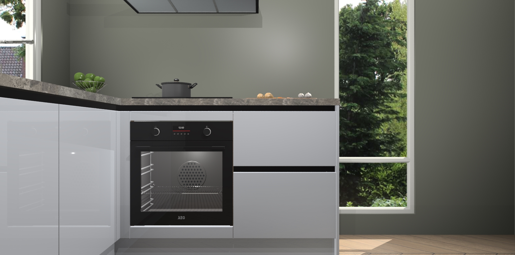 De Sneeuwwitte hoogglans greeploze keuken Phuket heeft alles wat u maar kunt wensen. Niet alleen zijn er softclose deuren, maar ook 5 ingebouwde apparaten: een oven, inductiekookplaat, afzuigkap, vaatwasser en koelkast - waarbij u later gemakkelijk naar het AEG merk, van inductiekookplaat naar kookplaat met geïntegreerde afzuiging of van oven naar combimagnetron kunt upgraden. Dat alles tegen een vast laag tarief! Bovendien geeft de Sneeuwwitte hoogglans greeploze keuken Phuket supersnelle levering van 7 weken. Echt iets voor u als u er niet op wilt wachten om het resultaat te zien in eigen keuken!