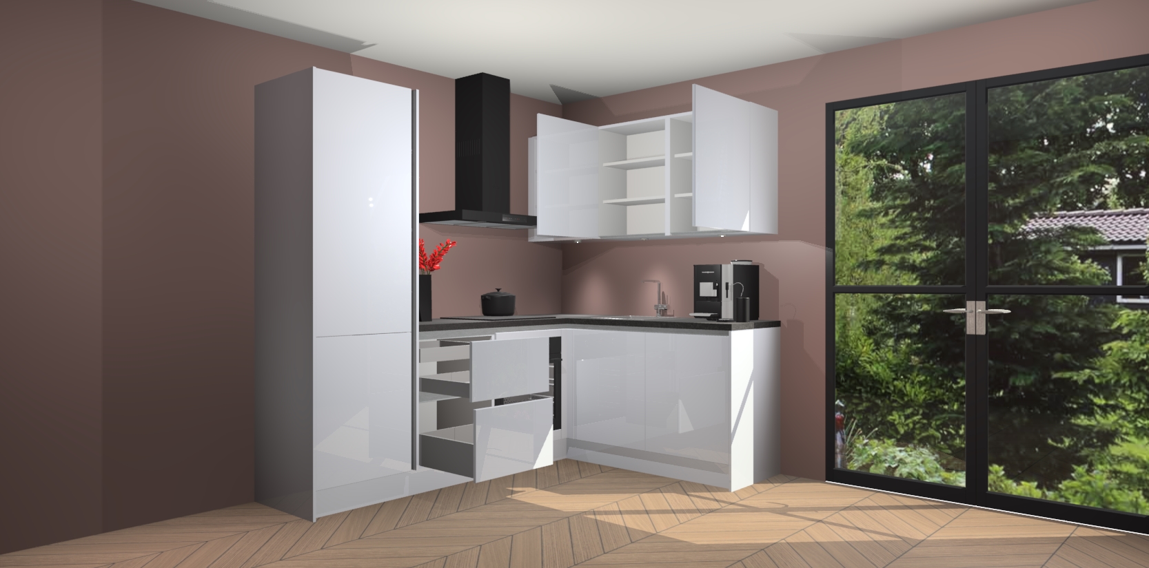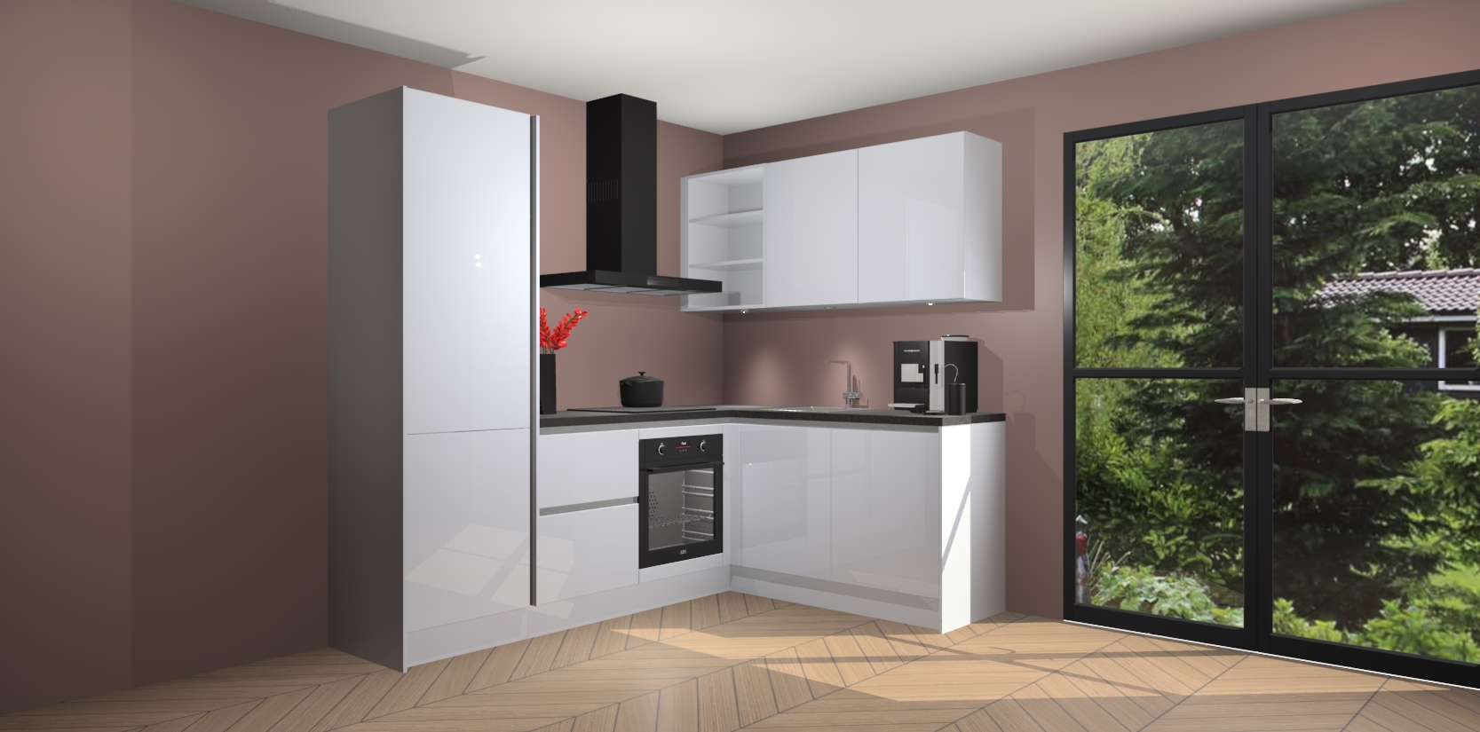 Wauw, dit is de Sneeuwwitte hoogglans greeploze keuken Pilsen! U kunt gerust zeggen dat u elegantie combineert met functionaliteit met deze keuken. Met een modern en chique ontwerp is de keuken precies wat u nodig heeft om uw ruimte te verfraaien. De binnenzijde van de kasten is in dezelfde donkere kleur als de buitenzijde voor een uniforme look, compleet met softclose-kasten die stil sluiten.