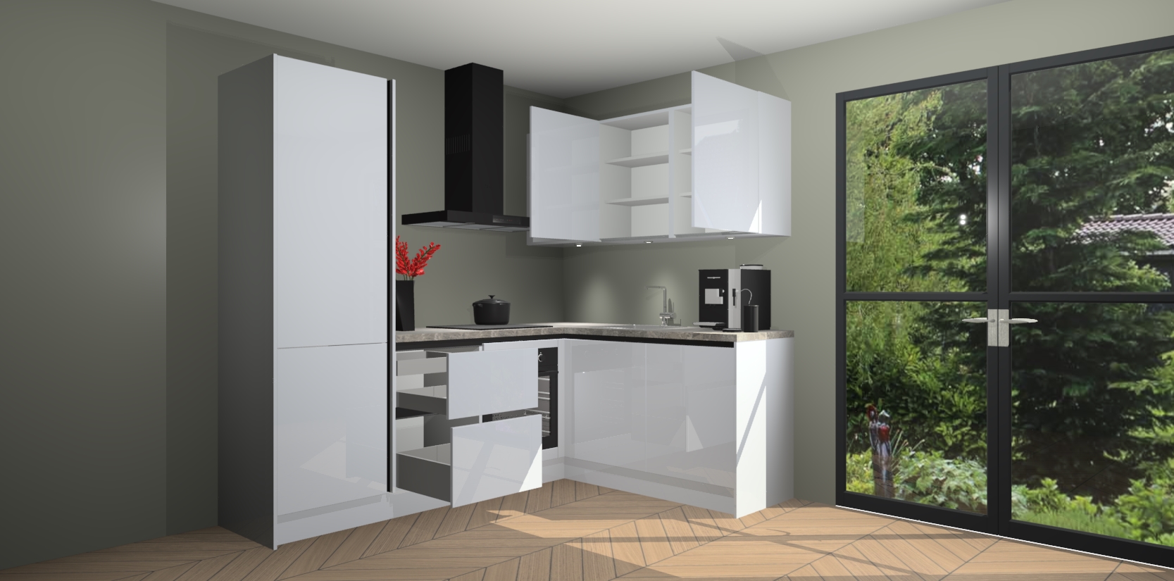 In deze box zijn alle kleuren verzameld van de deuren en werkbladen. Vraag de gratis kleurenbox aan en kijk thuis rustig verder!