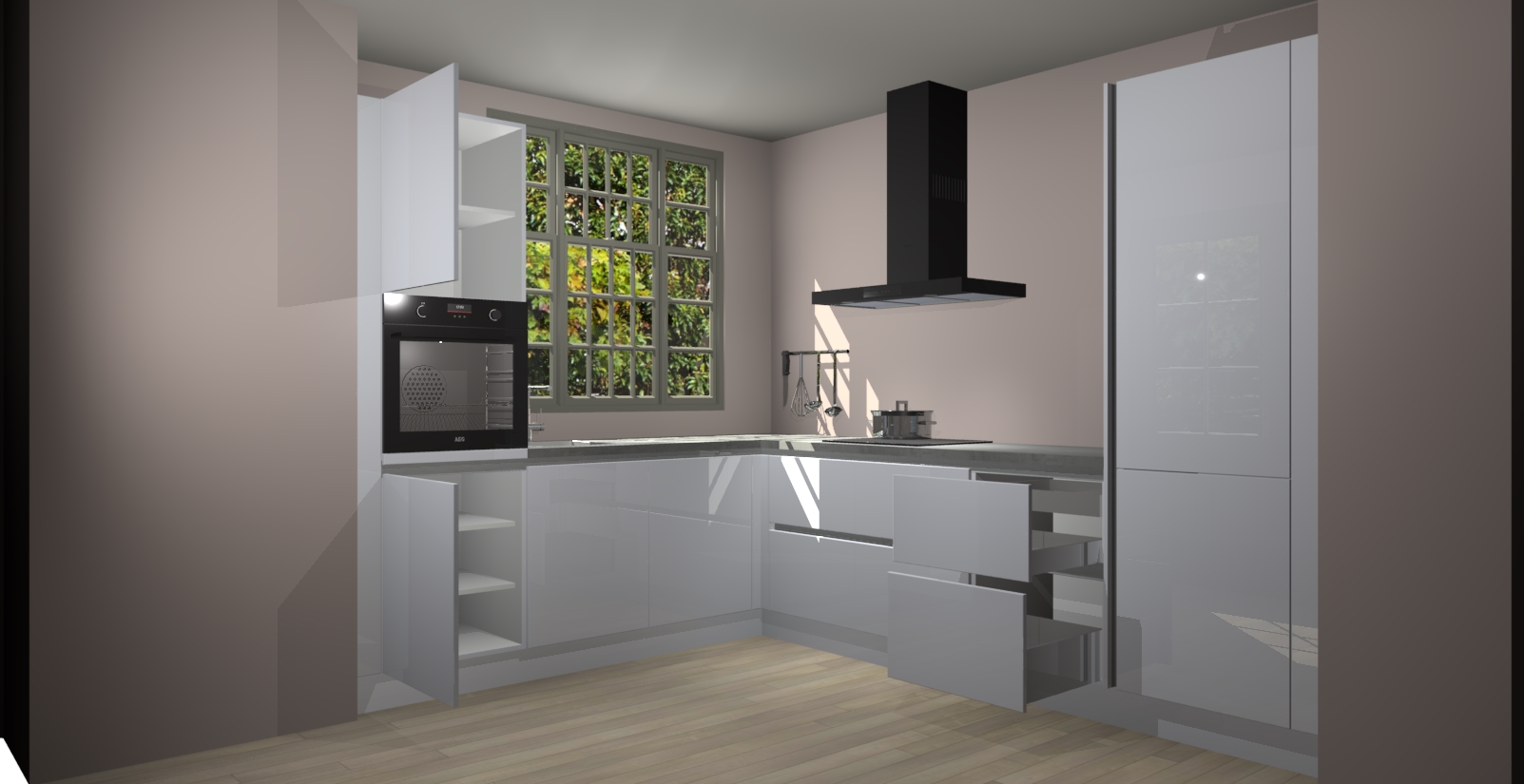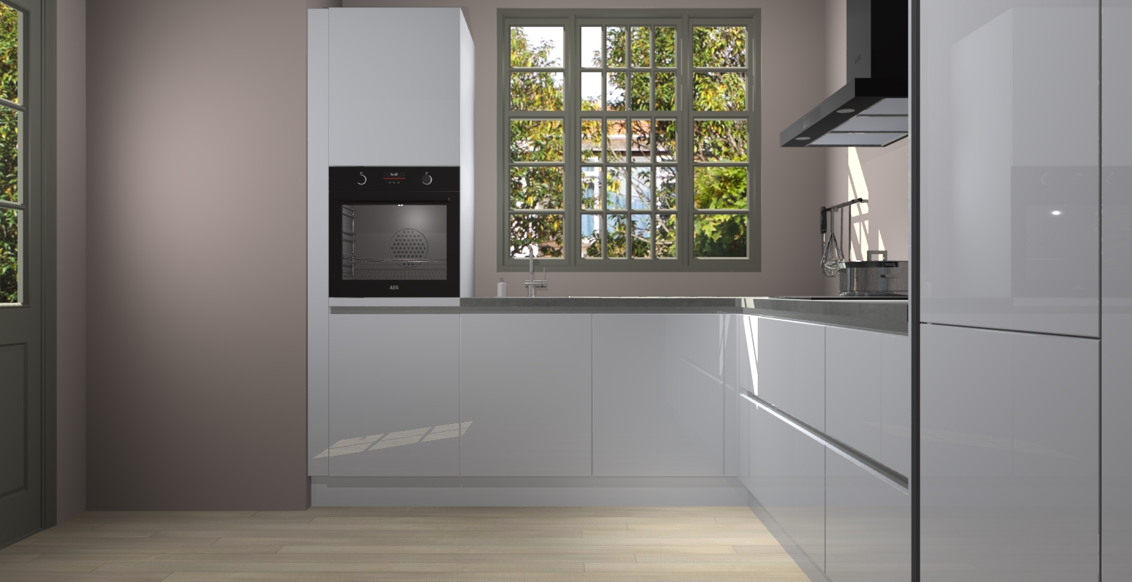 Met een modern, tijdloos design en ruime opslagruimte, zult u zich in no-time thuis voelen in uw nieuwe keuken. Uw leven wordt eenvoudiger met de soft-close deuren die voor het ultieme stille comfort zorgen - geen geluid dat u stoort terwijl u kookt. Ook is de keuken voorzien van 5 ingebouwde apparaten: een oven, inductie kookplaat, afzuigkap, vaatwasser en koelkast. Deze kunnen gemakkelijk na bestelling worden bijgewerkt naar AEG - waardoor uw luxe ervaring compleet is.