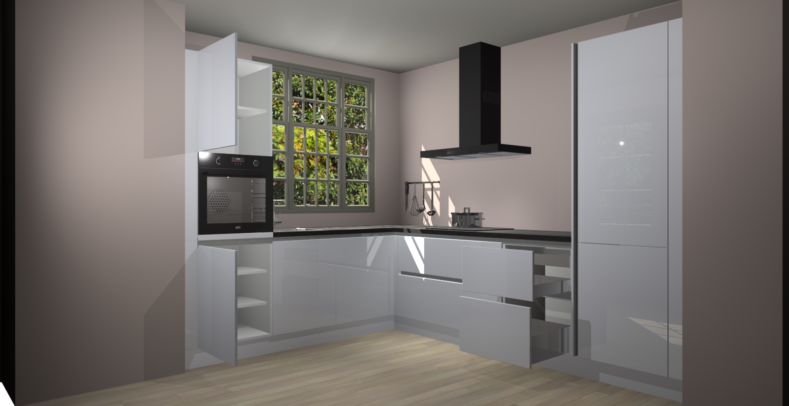 Met een modern, tijdloos design en ruime opslagruimte, zult u zich in no-time thuis voelen in uw nieuwe keuken. Uw leven wordt eenvoudiger met de soft-close deuren die voor het ultieme stille comfort zorgen - geen geluid dat u stoort terwijl u kookt. Ook is de keuken voorzien van 5 ingebouwde apparaten: een oven, inductie kookplaat, afzuigkap, vaatwasser en koelkast. Deze kunnen gemakkelijk na bestelling worden bijgewerkt naar AEG - waardoor uw luxe ervaring compleet is.