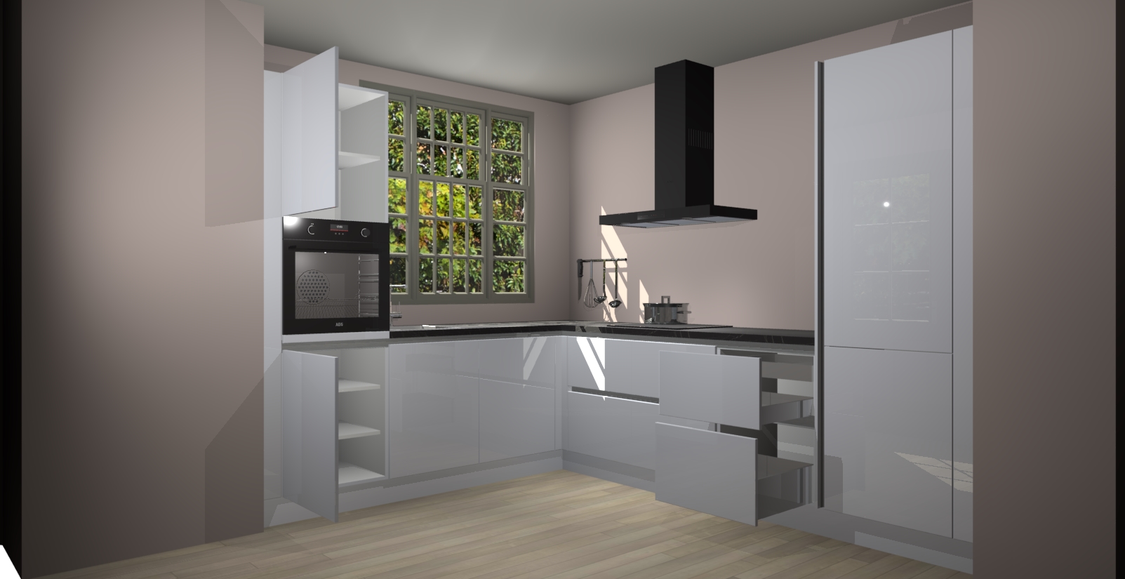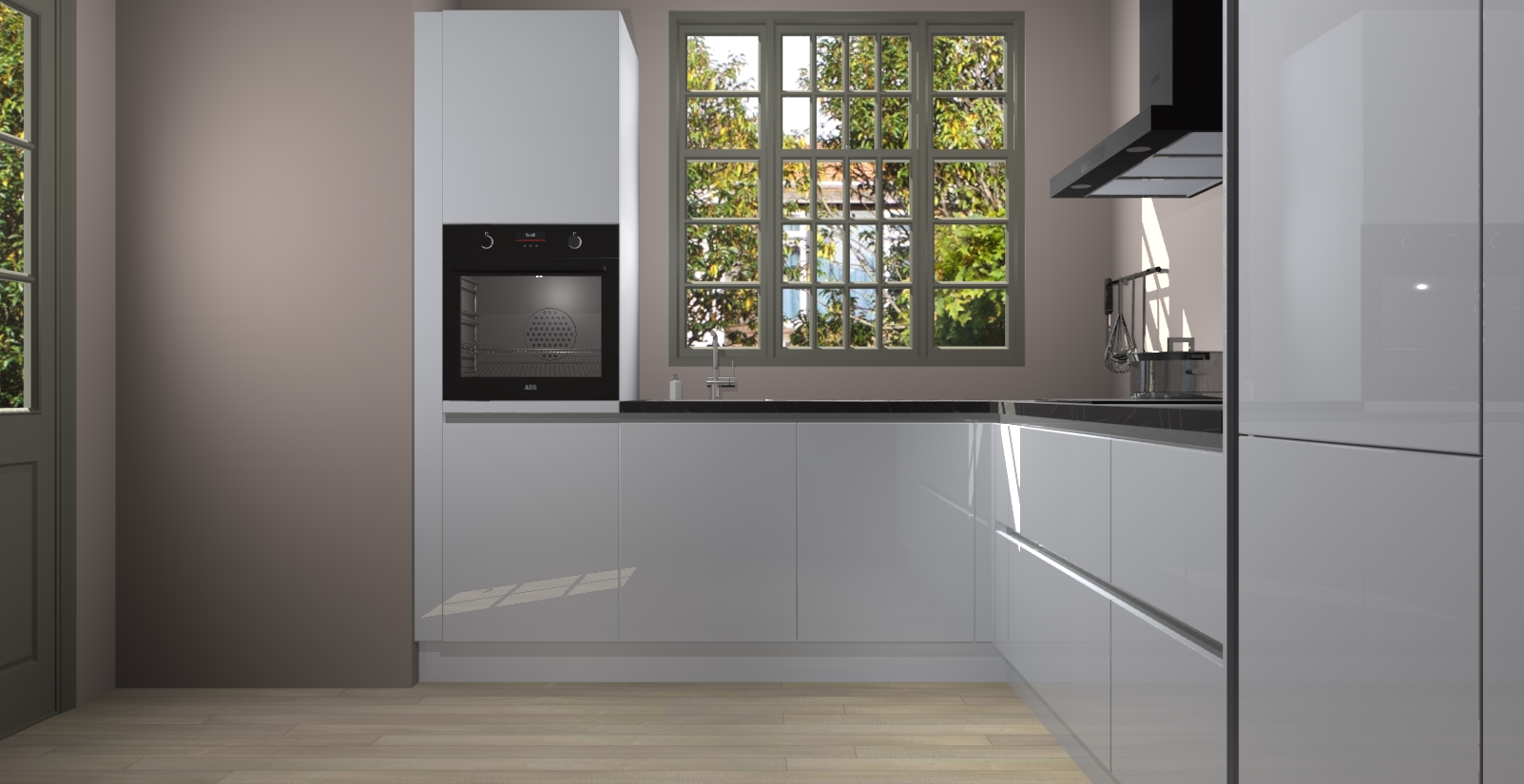 Met een modern, tijdloos design en ruime opslagruimte, zult u zich in no-time thuis voelen in uw nieuwe keuken. Uw leven wordt eenvoudiger met de soft-close deuren die voor het ultieme stille comfort zorgen - geen geluid dat u stoort terwijl u kookt. Ook is de keuken voorzien van 5 ingebouwde apparaten: een oven, inductie kookplaat, afzuigkap, vaatwasser en koelkast. Deze kunnen gemakkelijk na bestelling worden bijgewerkt naar AEG - waardoor uw luxe ervaring compleet is.