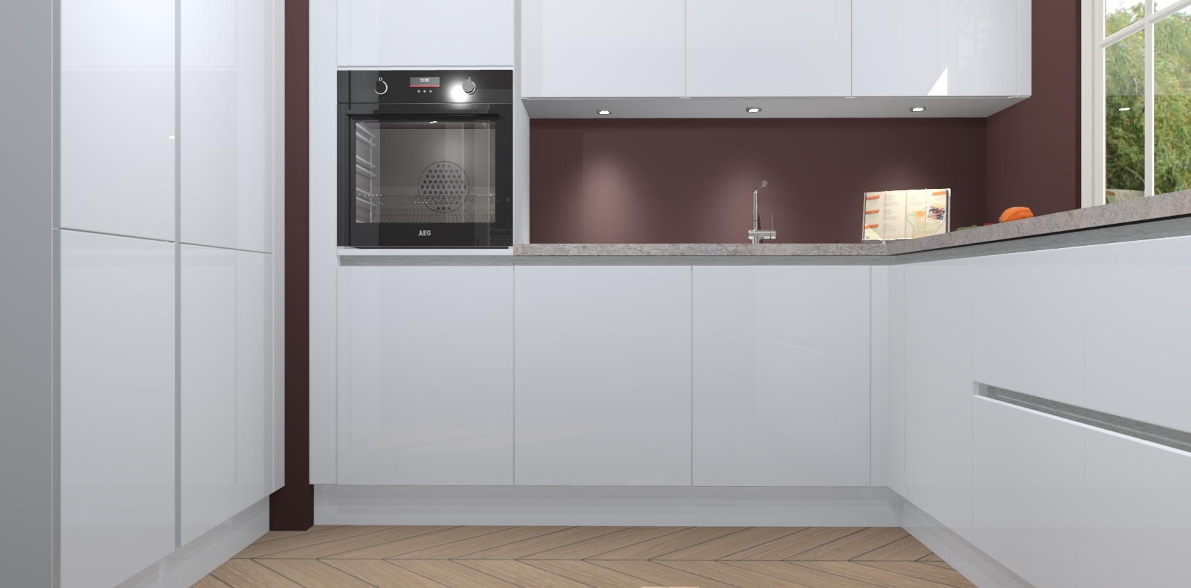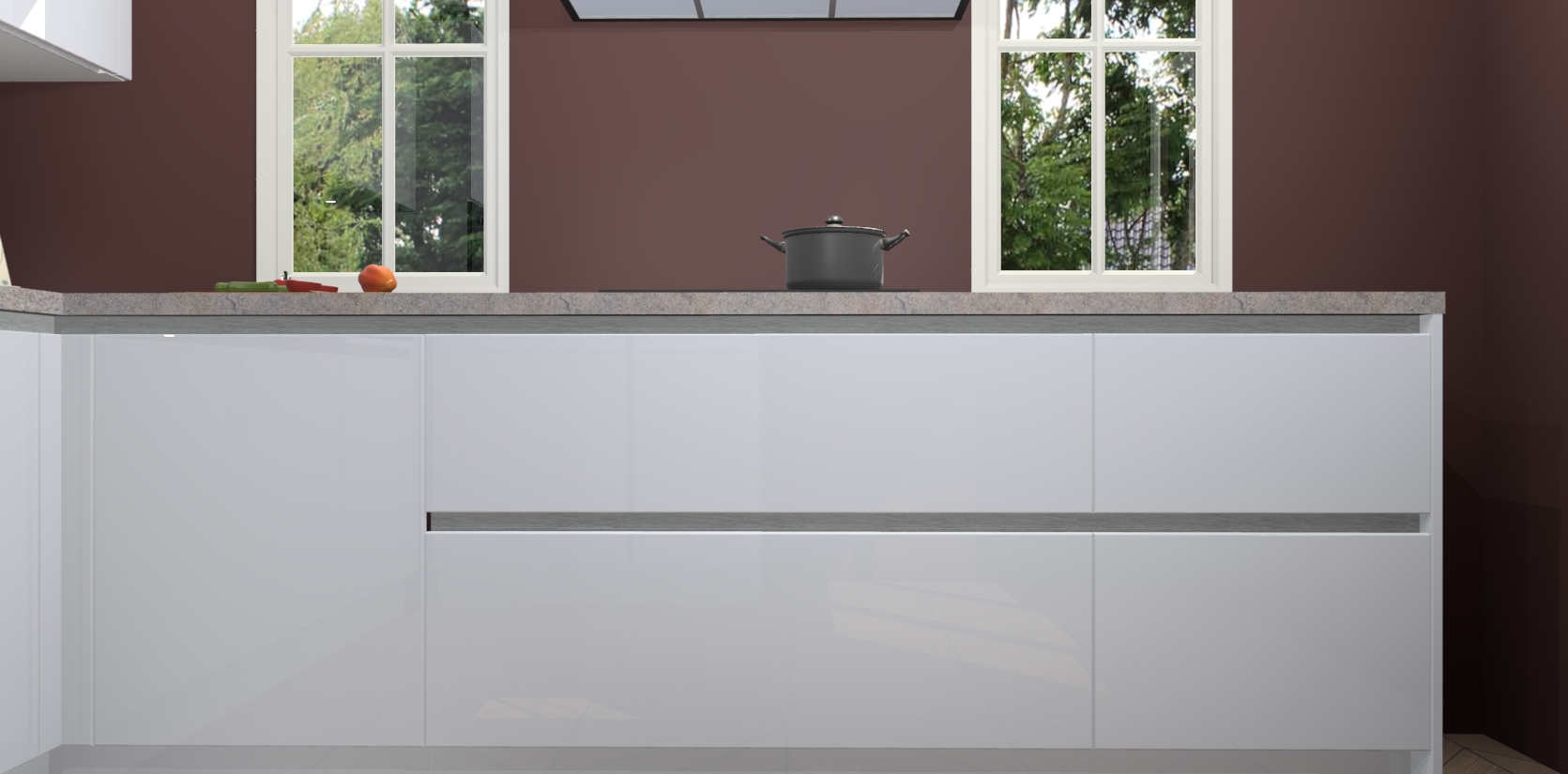 En met onze scherpe prijzen hoeft u niet in te leveren op kwaliteit. Sneeuwwitte hoogglans  greeploze keuken Regina is de perfecte combinatie van functioneel en betaalbaar, dus waarom zou u ergens anders zoeken naar de keuken van uw dromen?