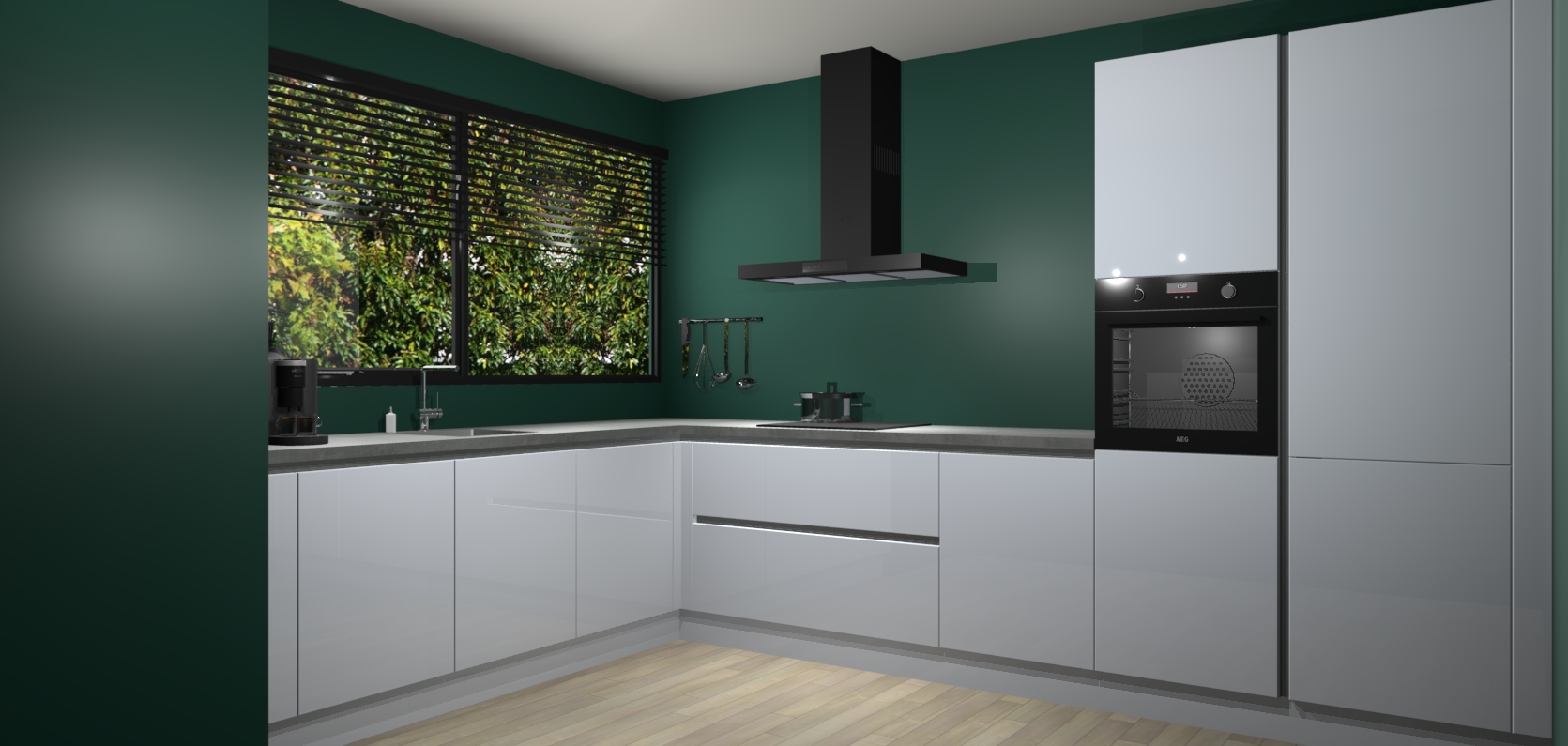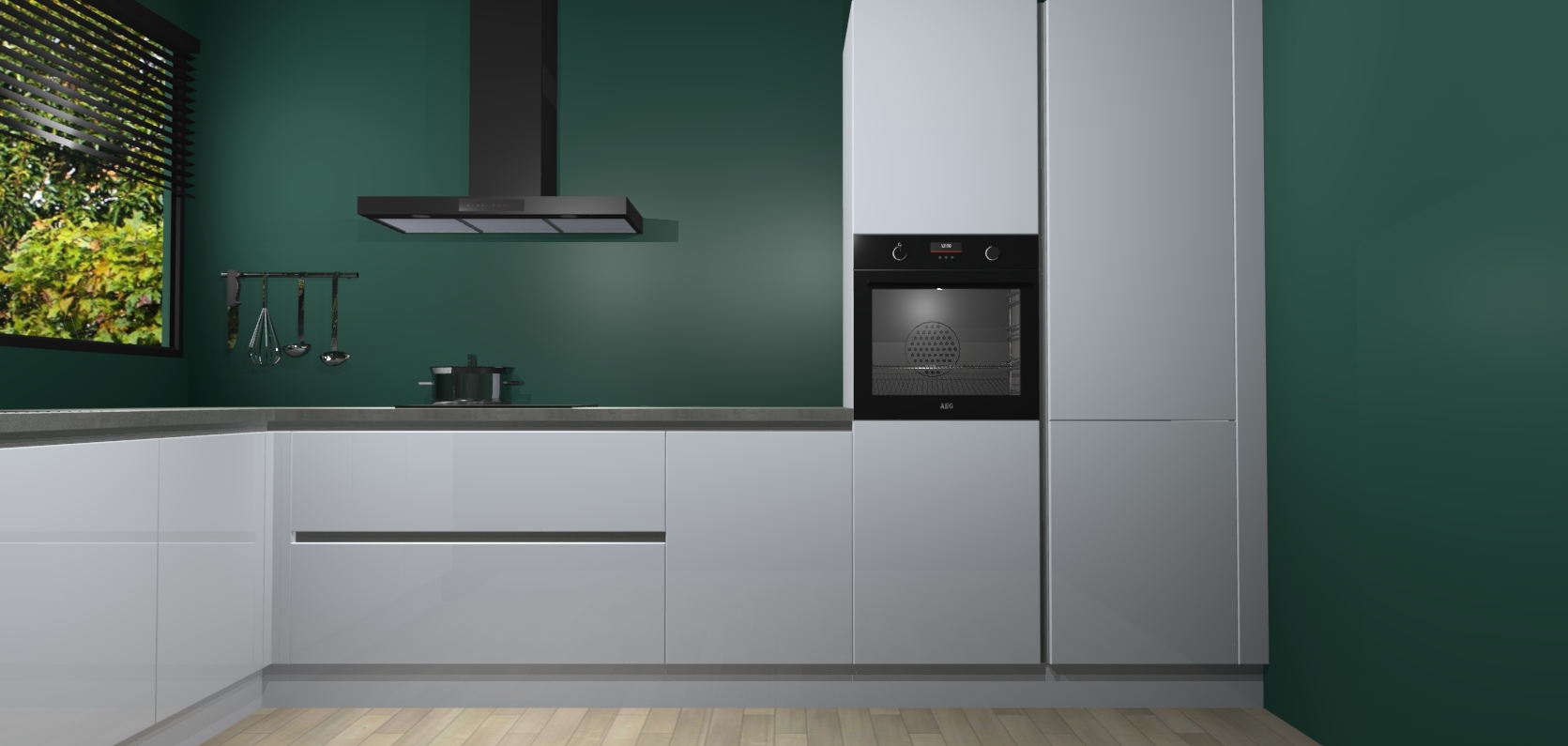 Met een modern, tijdloos design en ruime opslagruimte, zult u zich in no-time thuis voelen in uw nieuwe keuken. Uw leven wordt eenvoudiger met de soft-close deuren die voor het ultieme stille comfort zorgen - geen geluid dat u stoort terwijl u kookt. Ook is de keuken voorzien van 5 ingebouwde apparaten: een oven, inductie kookplaat, afzuigkap, vaatwasser en koelkast. Deze kunnen gemakkelijk na bestelling worden bijgewerkt naar AEG - waardoor uw luxe ervaring compleet is.