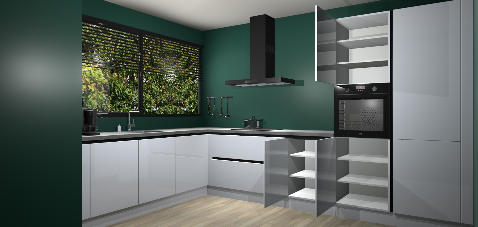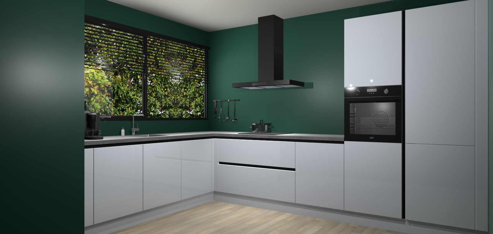 Met een modern, tijdloos design en ruime opslagruimte, zult u zich in no-time thuis voelen in uw nieuwe keuken. Uw leven wordt eenvoudiger met de soft-close deuren die voor het ultieme stille comfort zorgen - geen geluid dat u stoort terwijl u kookt. Ook is de keuken voorzien van 5 ingebouwde apparaten: een oven, inductie kookplaat, afzuigkap, vaatwasser en koelkast. Deze kunnen gemakkelijk na bestelling worden bijgewerkt naar AEG - waardoor uw luxe ervaring compleet is.