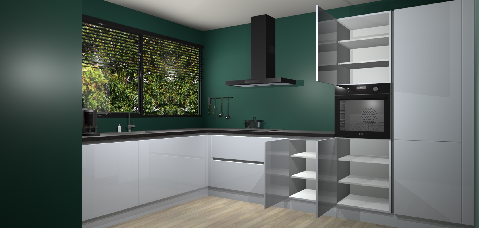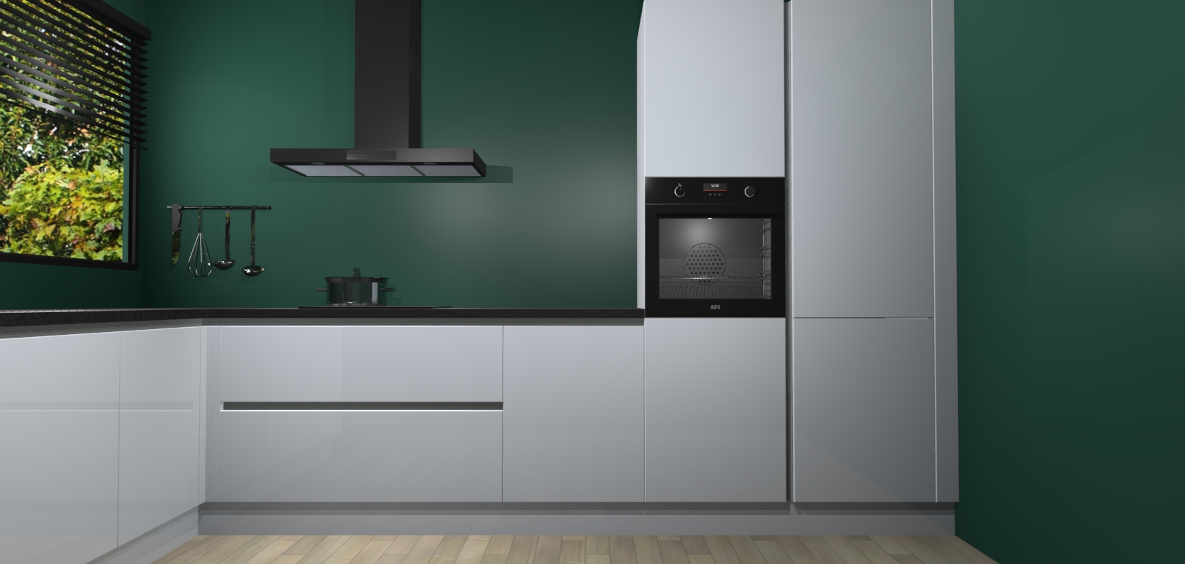 Met een modern, tijdloos design en ruime opslagruimte, zult u zich in no-time thuis voelen in uw nieuwe keuken. Uw leven wordt eenvoudiger met de soft-close deuren die voor het ultieme stille comfort zorgen - geen geluid dat u stoort terwijl u kookt. Ook is de keuken voorzien van 5 ingebouwde apparaten: een oven, inductie kookplaat, afzuigkap, vaatwasser en koelkast. Deze kunnen gemakkelijk na bestelling worden bijgewerkt naar AEG - waardoor uw luxe ervaring compleet is.