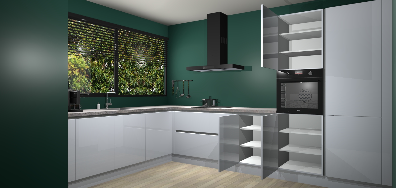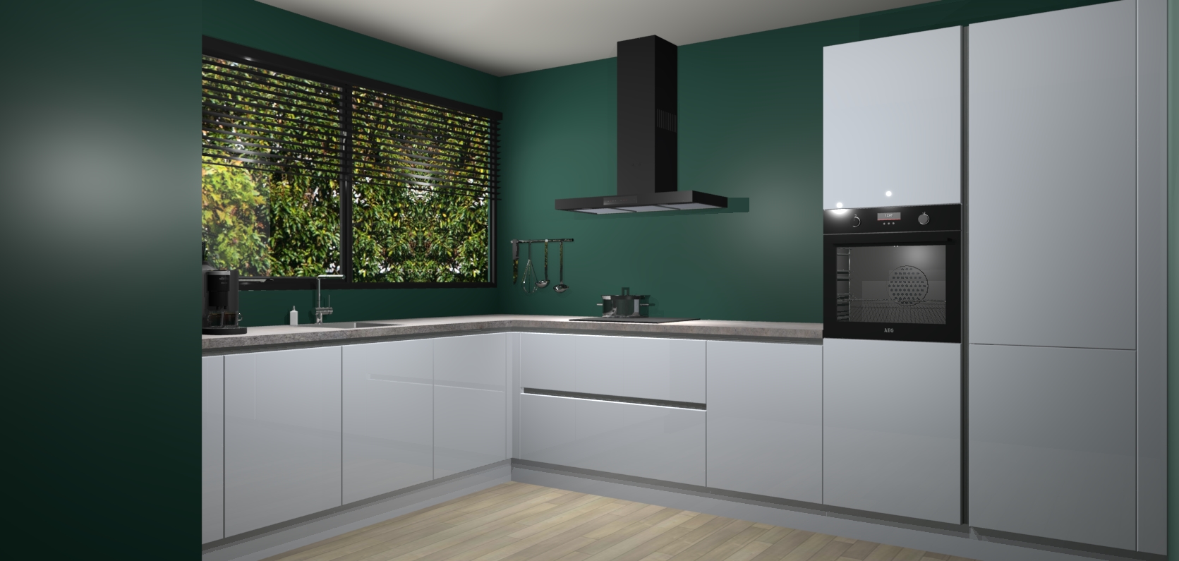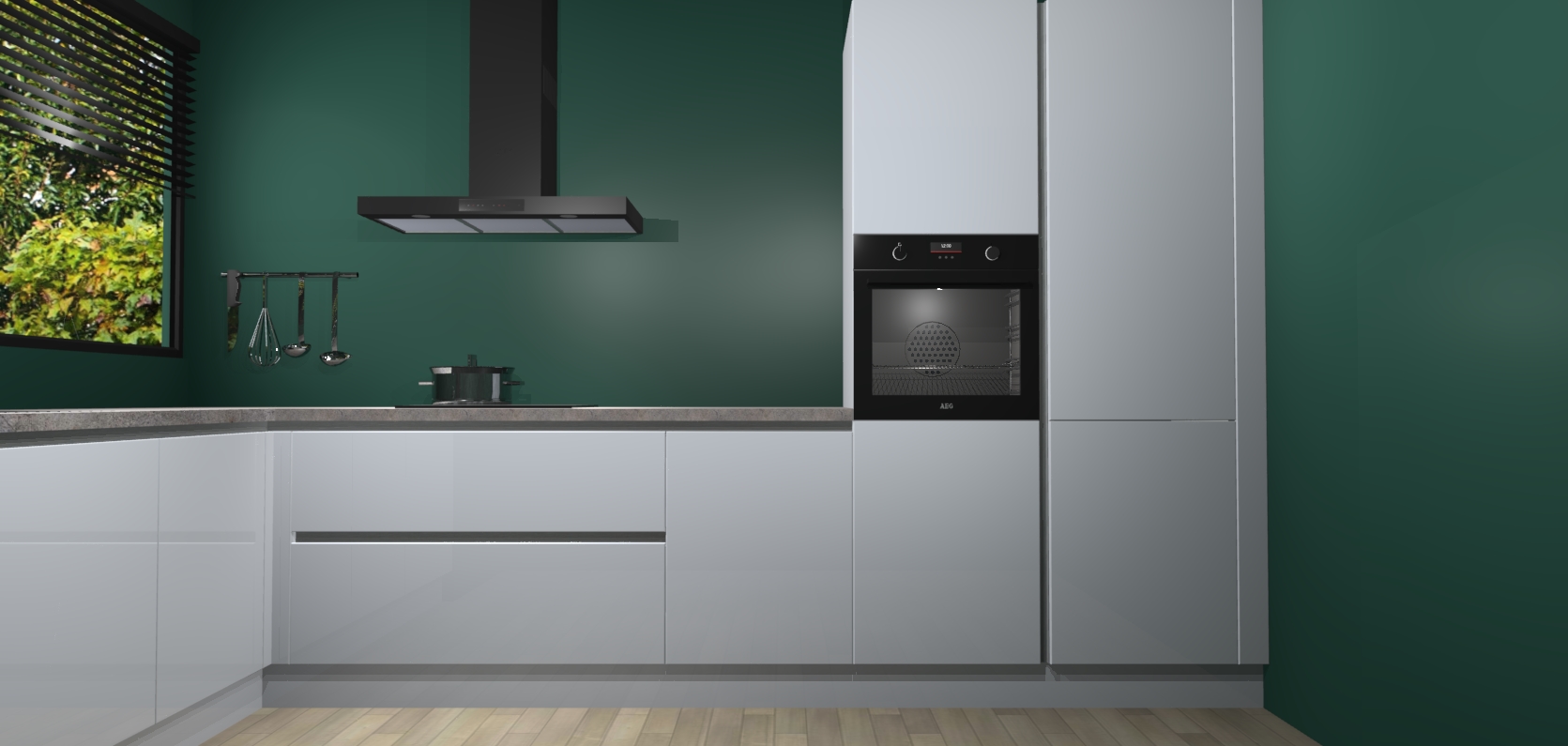 Met een modern, tijdloos design en ruime opslagruimte, zult u zich in no-time thuis voelen in uw nieuwe keuken. Uw leven wordt eenvoudiger met de soft-close deuren die voor het ultieme stille comfort zorgen - geen geluid dat u stoort terwijl u kookt. Ook is de keuken voorzien van 5 ingebouwde apparaten: een oven, inductie kookplaat, afzuigkap, vaatwasser en koelkast. Deze kunnen gemakkelijk na bestelling worden bijgewerkt naar AEG - waardoor uw luxe ervaring compleet is.